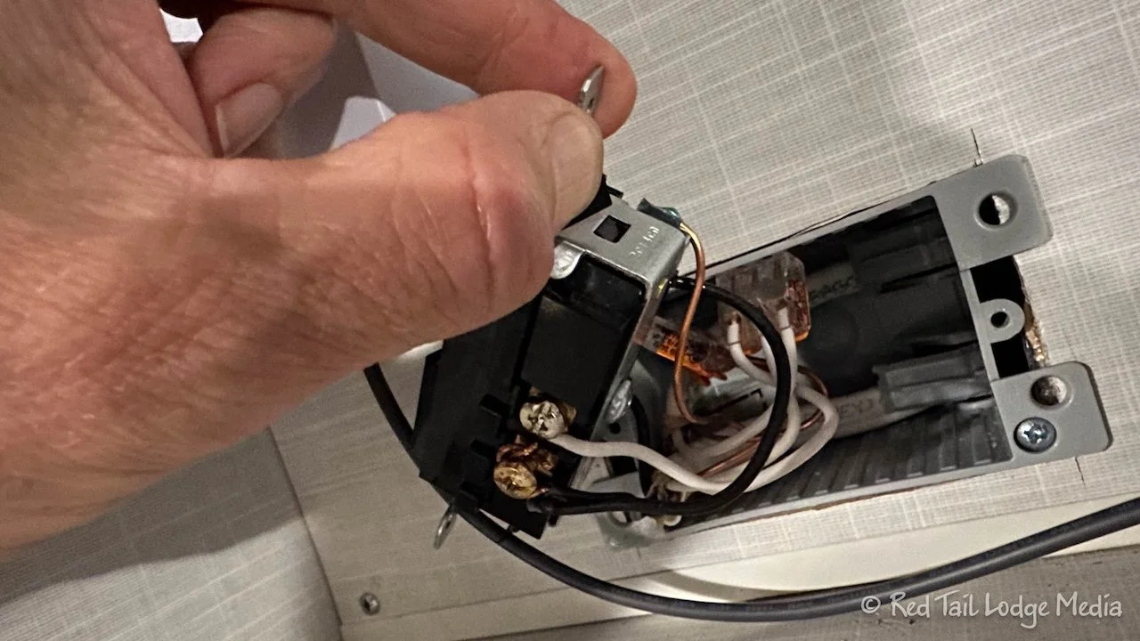 The other change was that he rewired the switch in the bedroom for the Starlink router. When he originally installed the switched outlet between the bedroom cabinets, it also controlled the outlet inside the driver side cabinet. So he rewired it in order for the outlet inside the cabinet to always be active. This was not a big deal since we never use that outlet anyway. But he was afraid we would forget that the outlet was switched and may wrongly believe it isn’t working some time in the future.