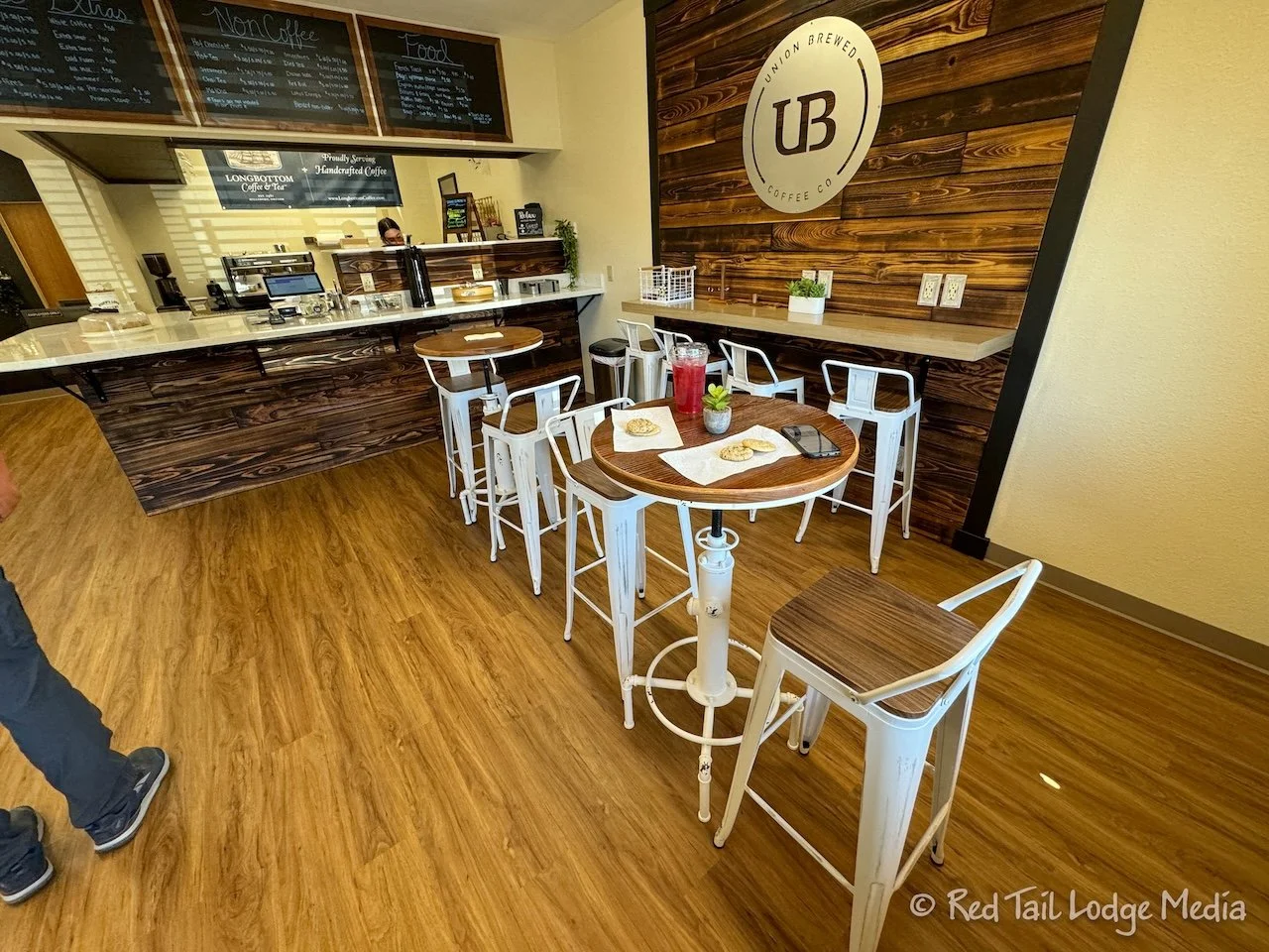 After strolling the main street in town and seeing the large egg, we went by the bakery to confirm that it was closed. Normally, it is only closed on Mondays and Tuesdays, but a sign on the door indicated they were closed the whole week for the 4th of July. The museum volunteers warned us that they heard the bakery was closed. However, they did tell us that a new coffee shop opened up just outside of town, on Old Highway 603, called the Union Brewed Coffee Company.