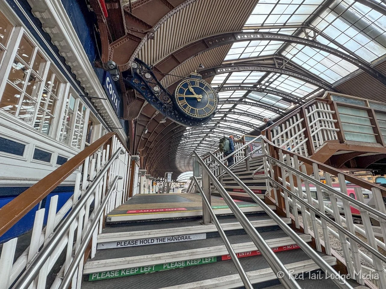 It was a short walk to the train station. Check out was at 10:30 am and our train was scheduled for 11:54, so we had some time to hang out at the station. When we arrived at the station, the boards said our train was going to be leaving from Platform 3, so we sat down on a bench on the platform. When we checked the boards a little later, the platform had changed to 5A. So we picked up our bags and headed over to Platform 5A. Around 11:30 am, Ann got up to stretch her legs and checked the boards again. They had moved our train back to Platform 3. So again, we picked up our bags and walked over the bridge to Platform 3. Thankfully, this was the last platform change. We were glad that Ann checked the boards that one last time.