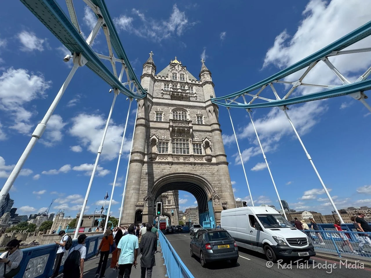 From there, we wandered around the Tower of London, over the Tower Bridge, and into the Borough Market. Borough Market has been operating for over 1000 years. We were hoping to find a place to sit down, relax, and enjoy a cold beverage, but the market was packed with people, very noisy, and there was no place to sit. So we just walked through the market and continued walking down alongside the River Thames.
