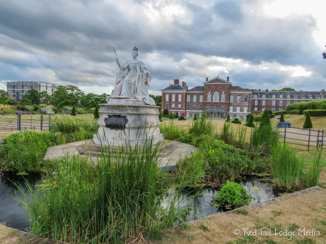 Then we walked some more. Through Hyde Park, we crossed into Kensington Gardens, past Kensington Palace. It was surprising how “wild” Hyde Park seemed, with woods and tall, uncut vegetation. As we walked along the Flower Walk, we caught a glimpse of the Gorilla Circus Flying Trapeze School Kensington Gardens. We watched a couple of people swing on the trapeze.