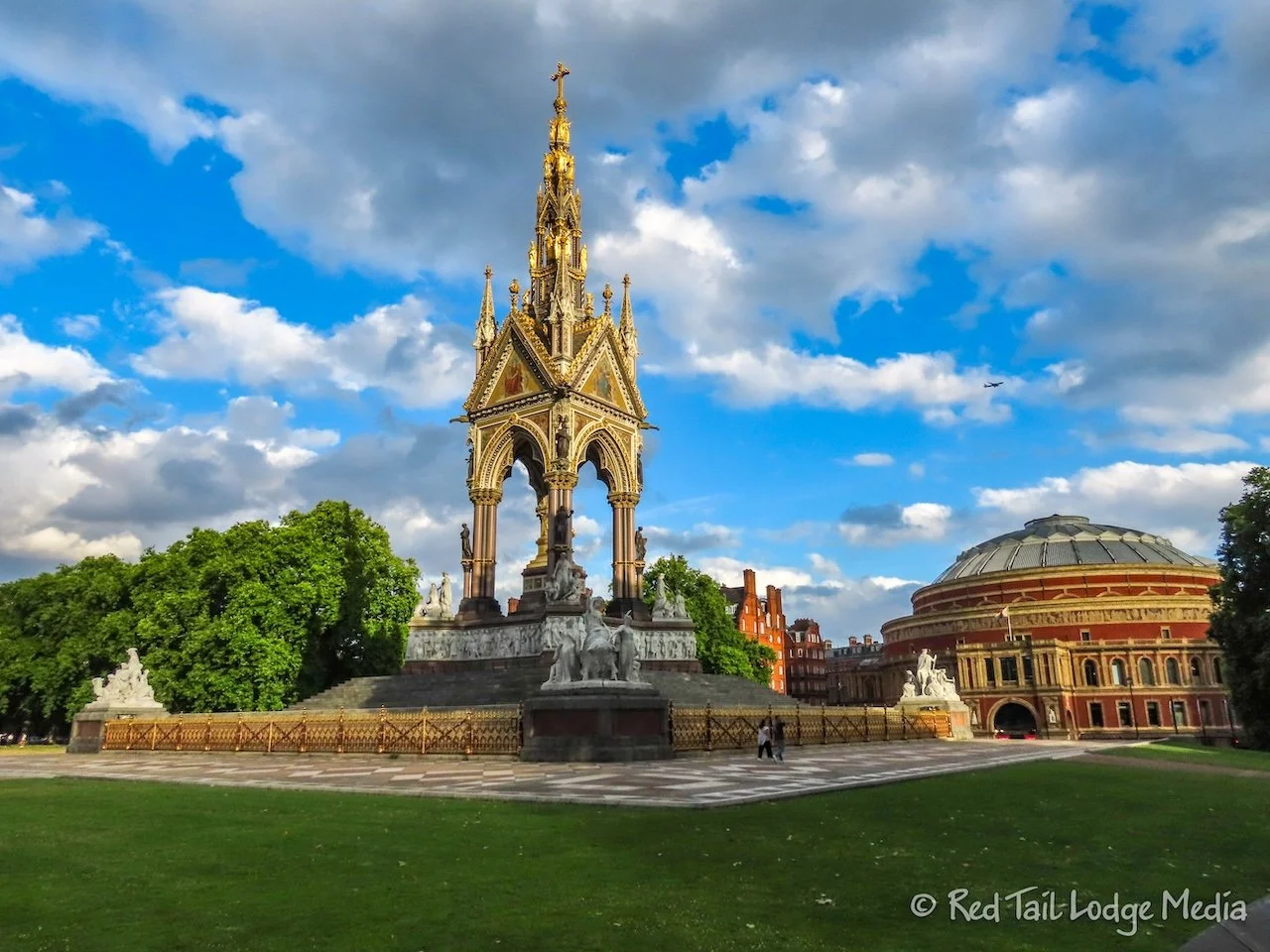 Then we came across the Albert Memorial. The gold plating on the monument was stunning, glistening in the bright sunshine of the evening. Across the street was the Royal Albert Hall, which is a concert hall.