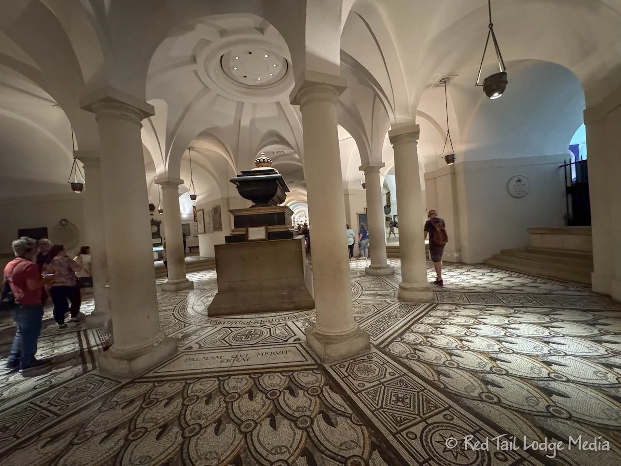 We split up and went our separate ways inside St. Paul’s. In the Crypt, at the end of our Highlights Tour, Keith and Ann found each other. Then we realized we had not gone up to the Whisper Chamber. Did that cost extra? No. We found it on our guides under “Galleries”. We located where the stairs were that led up to it and headed back up to the main floor to find it.