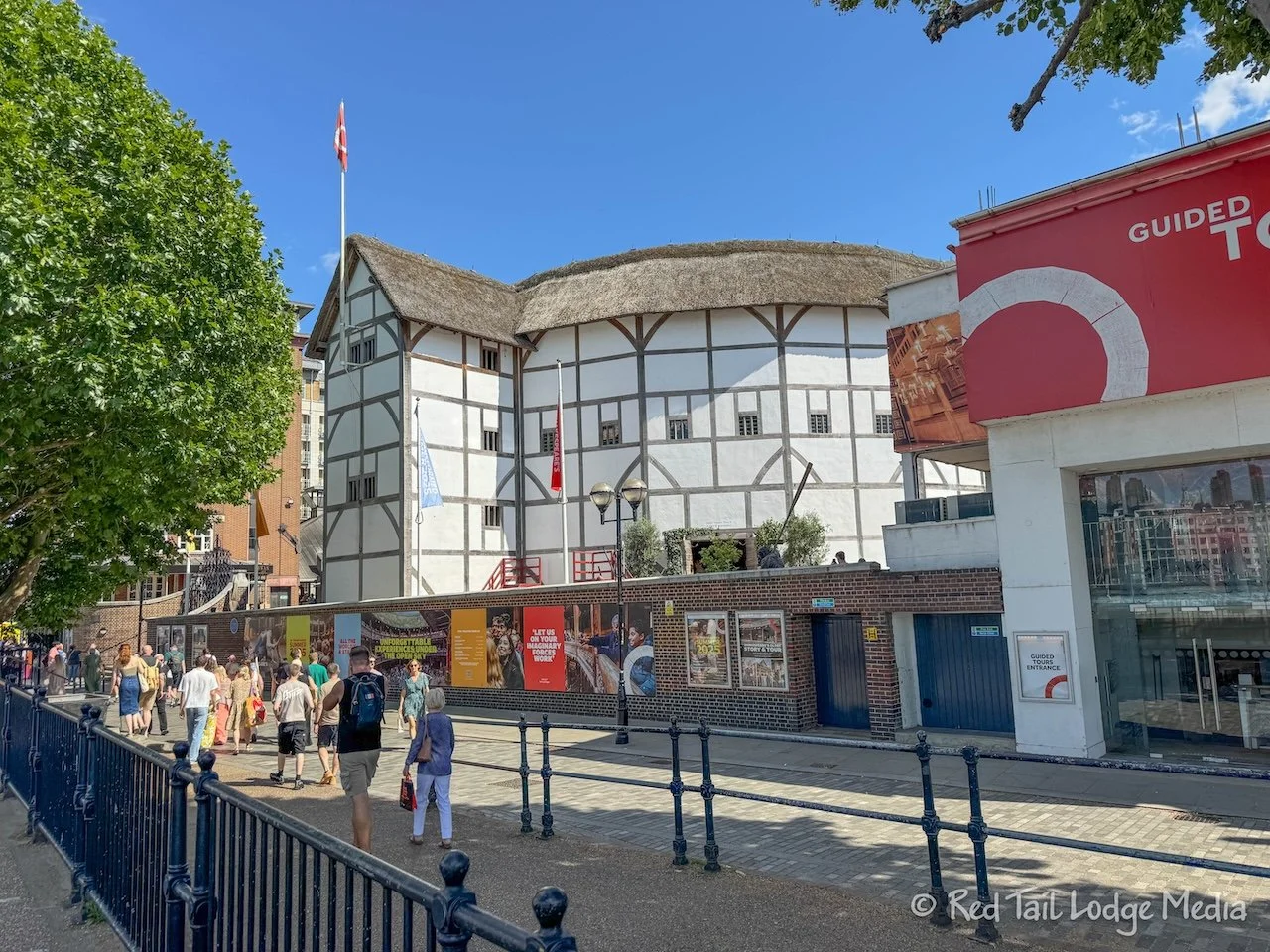 We came across a Pret A Manger. It is a chain that we’ve seen all over the place. It also looks like they have locations in the U.S. as well. The name is French for “Ready to Eat”. They have prepackaged sandwiches and salads, along with drinks and pastries. We just picked up some bottled drinks, then found a section of a wall in the shade to sit and relax. We happened to sit right next to Shakespeare’s Globe Theatre.