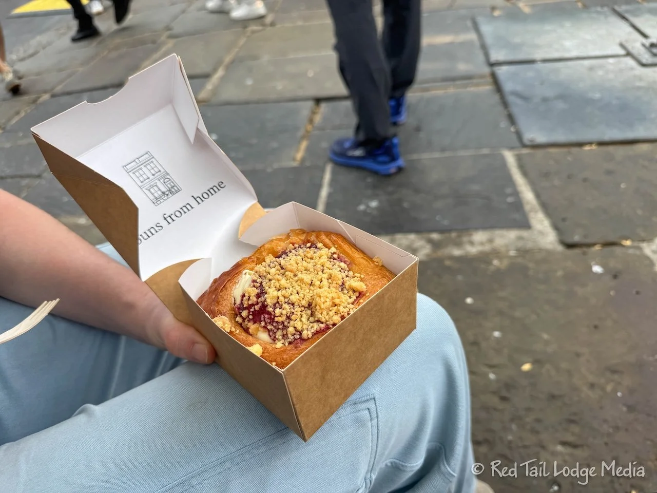 After filling our bellies, we wandered through the market some more. It was much larger than just the market hall. There are no food options in the market hall, but there are plenty of them in other areas surrounding the hall. We were thinking we might have enjoyed some of the food options there, but there was no place to sit to eat. However, Kirsten and Ann did split a mixed berry cheesecake bun. It was like a hollowed out cinnamon roll with a cheesecake filling in the middle. Delicious.