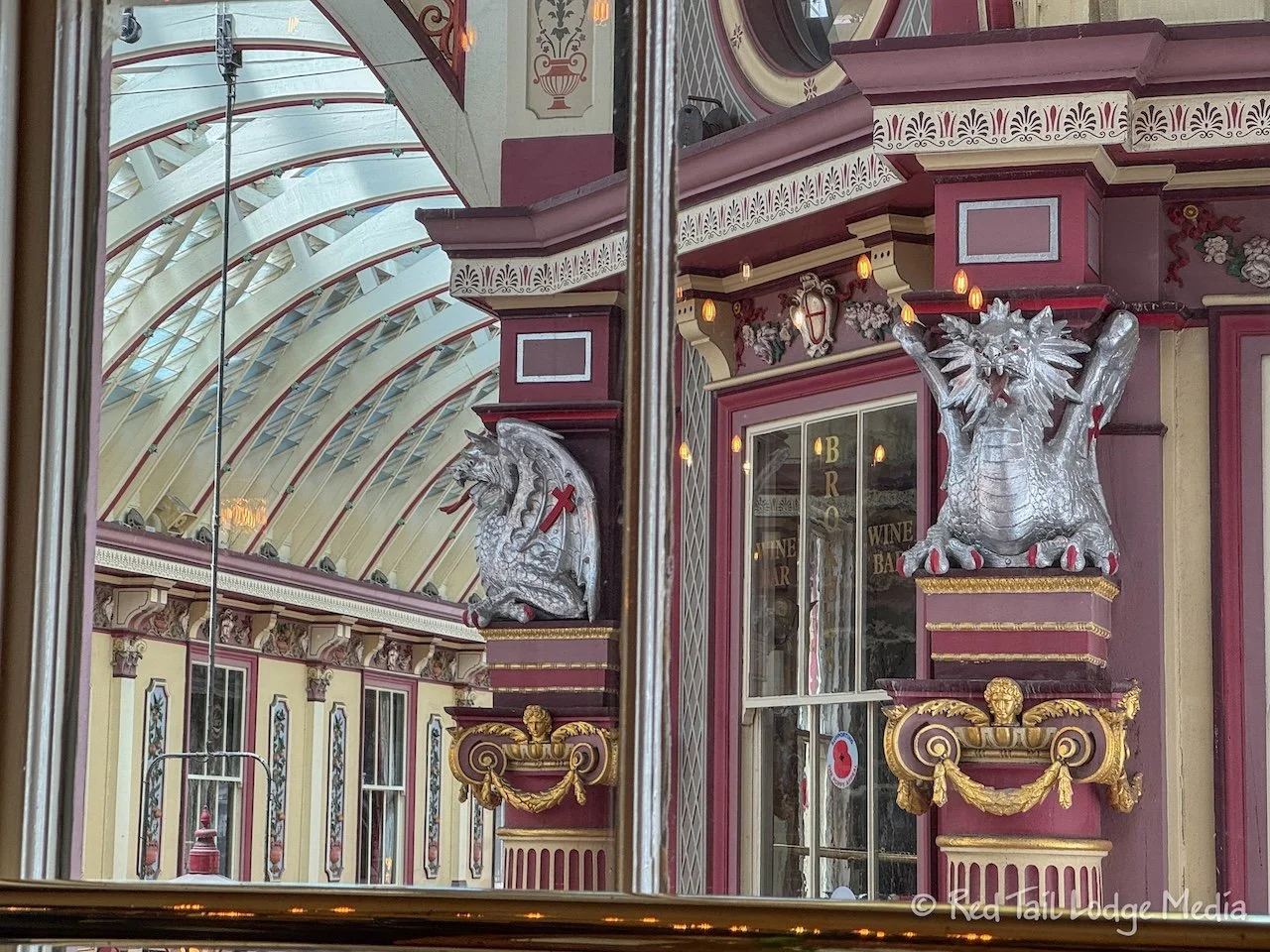 From the cathedral, we walked over to the Leadenhall Market for lunch. The architecture of the market is stunning, dating back to the 14th century. Unfortunately, there was some construction nearby with loud machinery, so the atmosphere was not as great as it probably normally is. We went inside and upstairs to the restaurant at Lamb Tavern to help muffle the noise.
