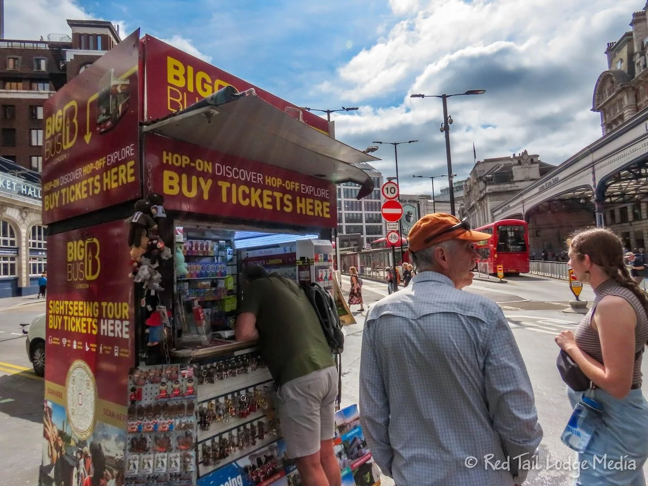 Not far from our hotel, near Victoria Station, were bus stops for the various hop on-hop off buses. There are quite a few different companies that offer one. We chose the Big Bus. On hop on-hop off buses we’ve been on before, you usually can buy tickets from the bus driver. However, we tried to do that this time, but the bus driver doesn’t sell them. He directed us to a little news stand down the block to purchase tickets. There are several tour routes along with extras for things like a boat tour. We just bought the 1 day ticket for the Red Route. The person at the booth said there was a sale that day, so we only paid 29 GBP per person. That is the same price we could have purchased them online, even though they list the full price as 43 GBP.