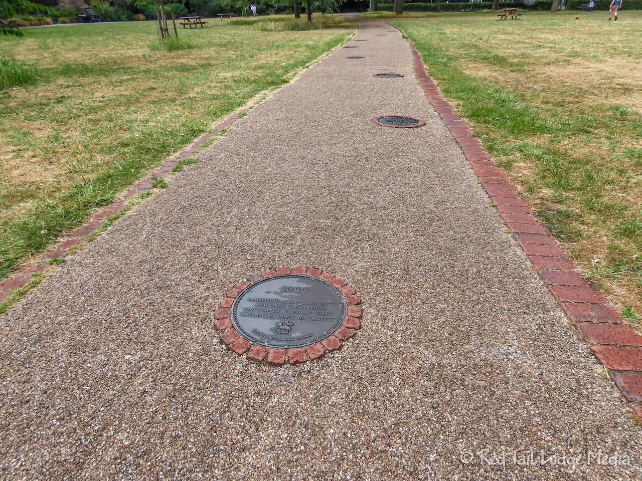 As we sat at a table next to the river enjoying the views and our refreshments, a dark cloud rolled in and it started to rain. None of us had brought umbrellas or jackets with us that day, so we headed for some trees to take cover. It didn’t really rain hard, but we didn’t feel like getting wet. The trees led us into Archbishop’s Park for a stroll and a bathroom break. As we were taking shelter under some trees, we searched Google Maps for a place to visit. The Graffiti Tunnel sounded interesting, so we went to check it out.