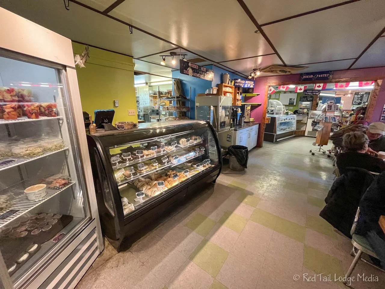 The Village Bakery was just a couple of blocks from the gas station. It is not directly on the highway, but on the corner of Kluane and Logan streets. Google Maps had us approach from Auriol Street and we weren’t sure we had the right place as all the buildings looked like private residences. However, when we turned onto Logan Street, it was clear we had the right place. There were cars and RV’s lining both Logan and Kluane.