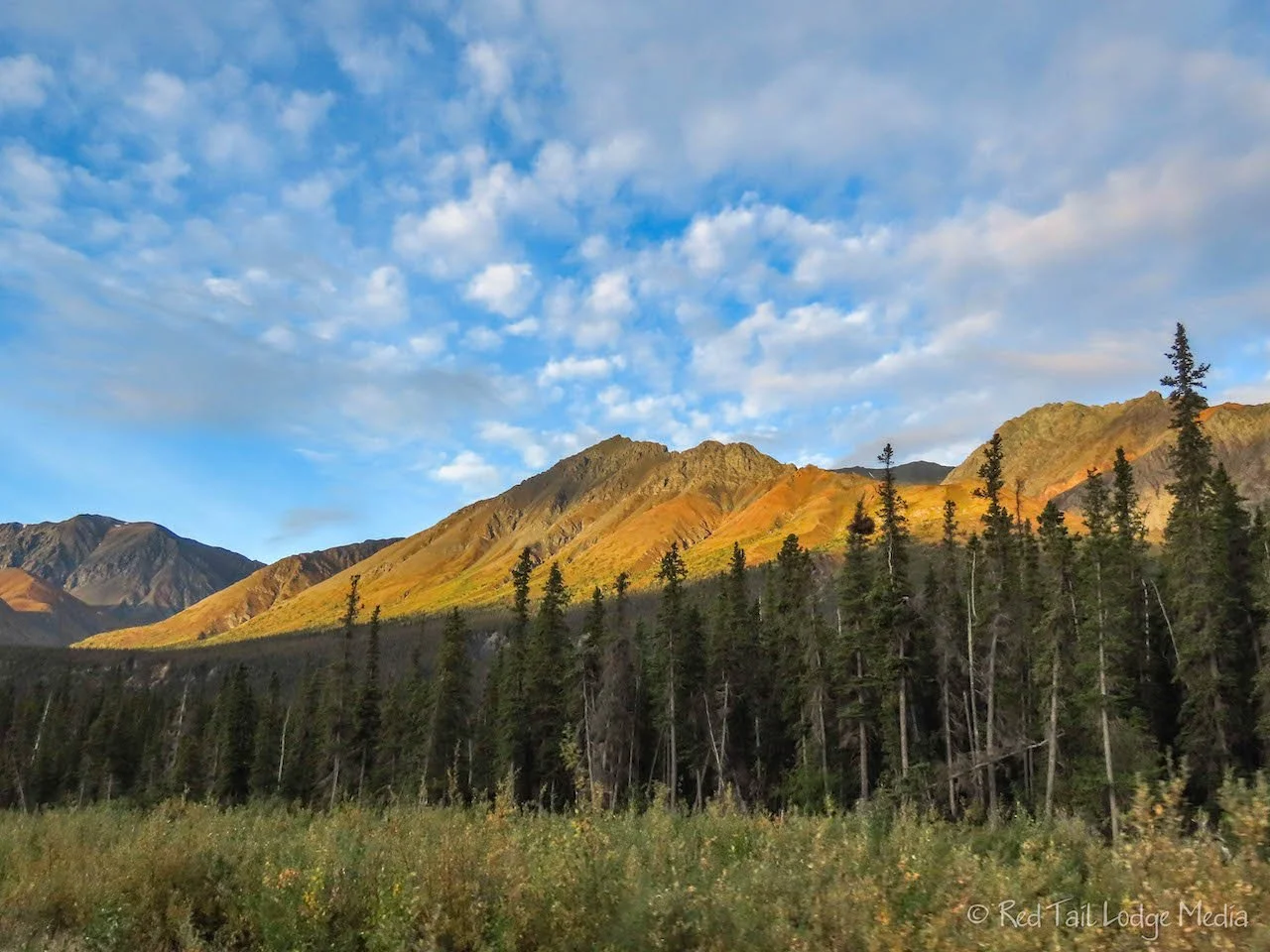 Starting out our drive, the mountains were stunning in the morning light. As we reached the southern end of Kluane Lake, we passed a sign that warned drivers of sheep in the area. Naturally, we pulled off at the next opportunity and scanned the mountain side with our binoculars. Sure enough, there were lots of sheep. They still were not very close, but it’s probably the closest we’ve been to Dall sheep all season. We could make out their features, such as legs and heads, but not in a lot of detail.