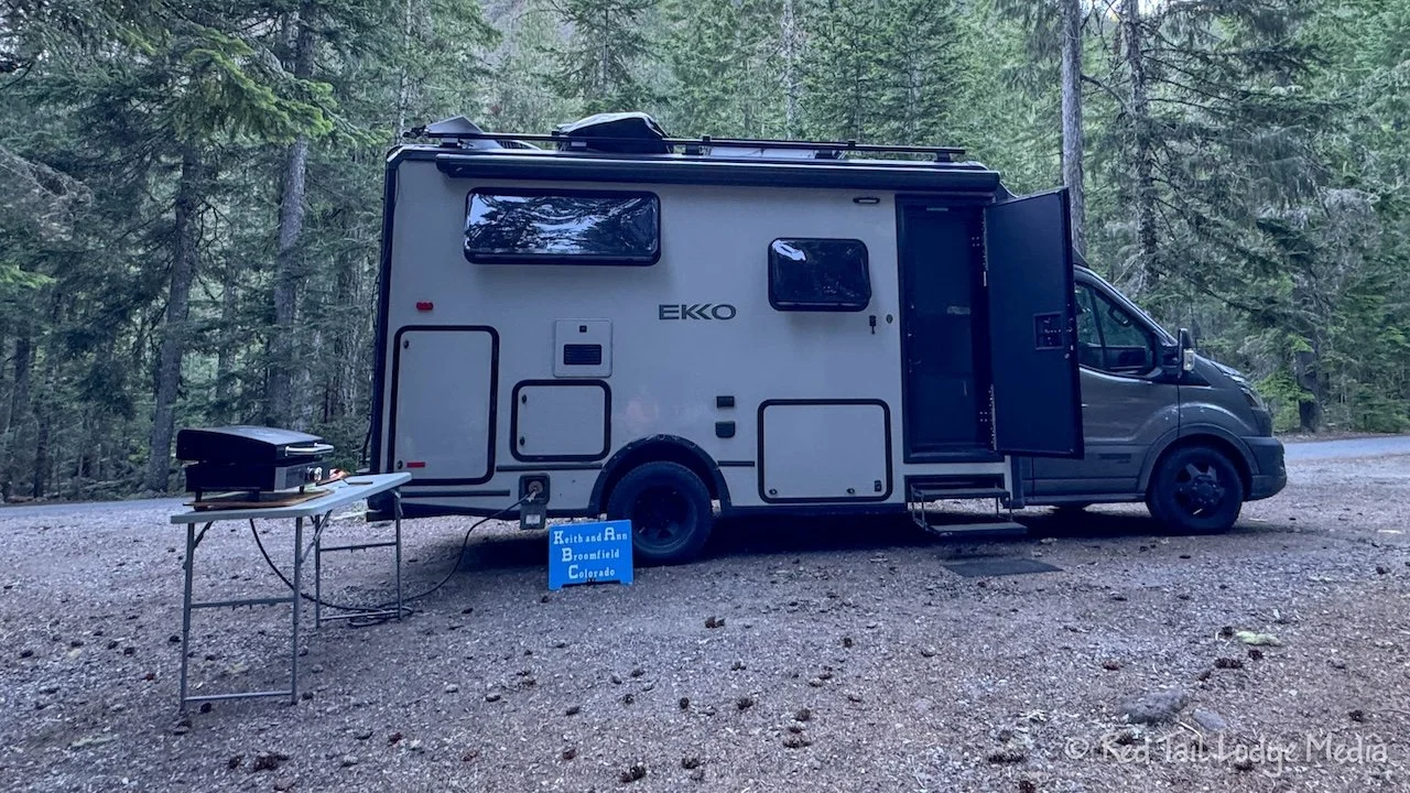 When we returned to Red Tail, there was another Winnebago EKKO parked next to us. We couldn’t tell if anyone was inside or not. After Ann ate her leftovers for dinner, she walked over to the other EKKO and knocked on the door. They answered. It was a couple, Dan and Debbie, from Florida. And yes, it was the same EKKO we saw in the Paradise parking lot on Friday. We chatted with them for quite a while. It is nice to swap stories about our rigs. We hope they have fun on the rest of their trip and safe travels!