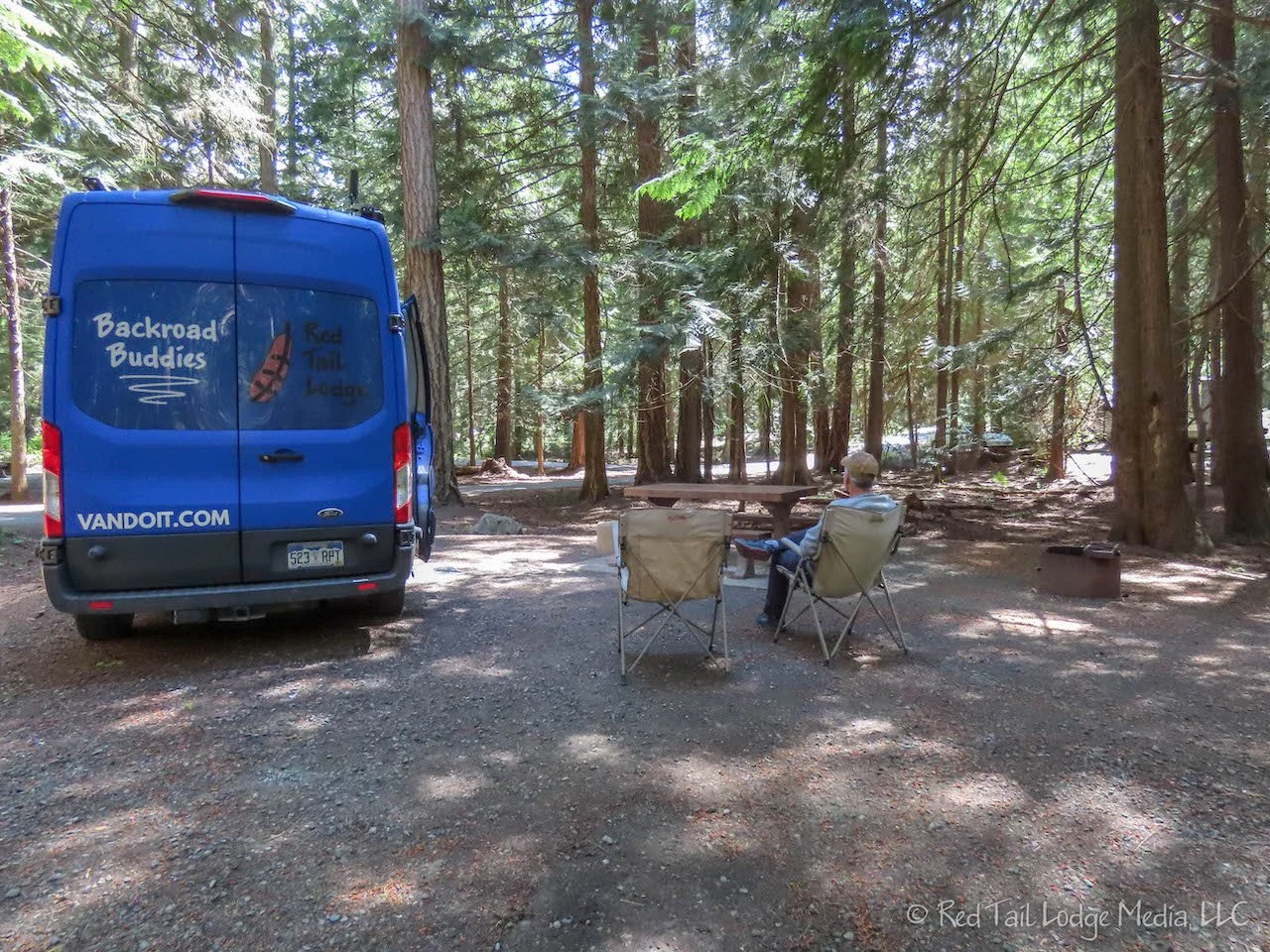 We were able to cook outside, but it was just a tad bit too cool to sit outside to eat our dinner. Back into our Red Tail Lodge (our van) we went for the rest of the evening.