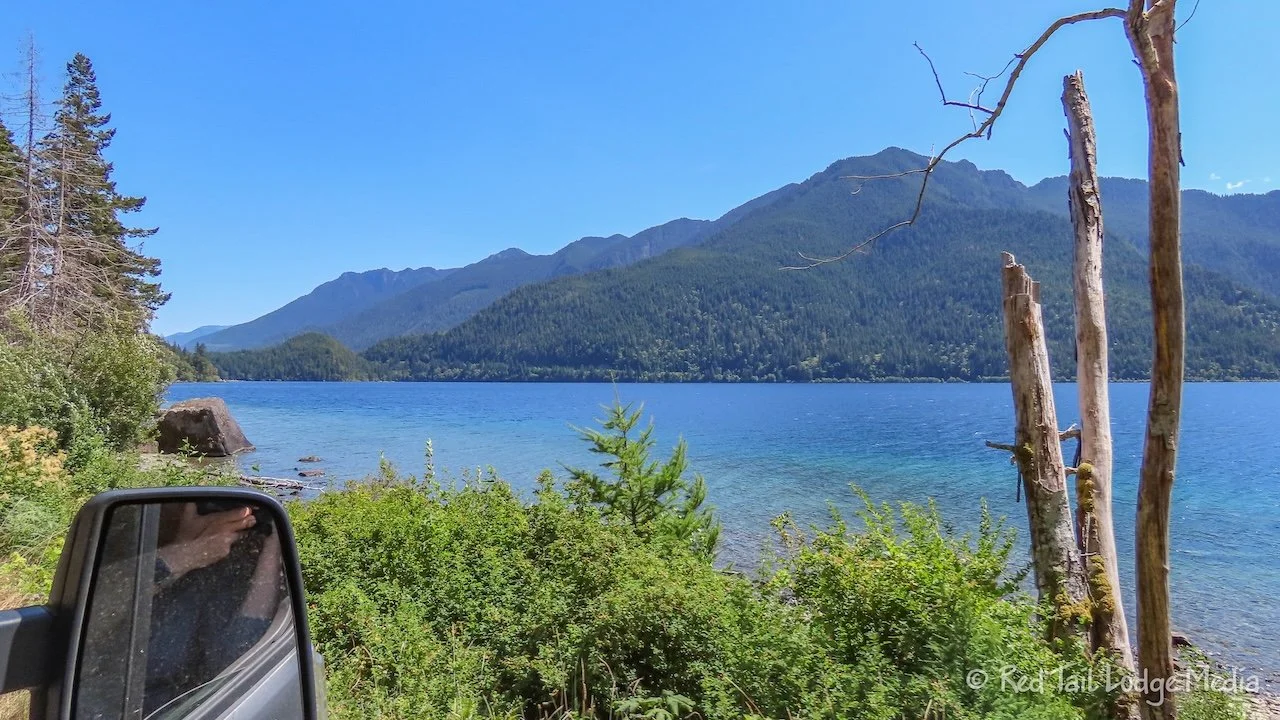 A bridge was closed on highway 101 due to construction, so we had to take a detour. The official detour was along route 112 to 113, rejoining the 101 at Lake Pleasant, but that was way further west than the campground. Google Maps took us a more direct way from route 112 onto Joyce-Piedmont Road. It was a nice, little road, but little was the operative word. When the road reached the banks of Lake Crescent, it wasn’t even two cars wide in places. You had to be careful because there was quite a bit of traffic on this road, probably due to the 101 road closure.