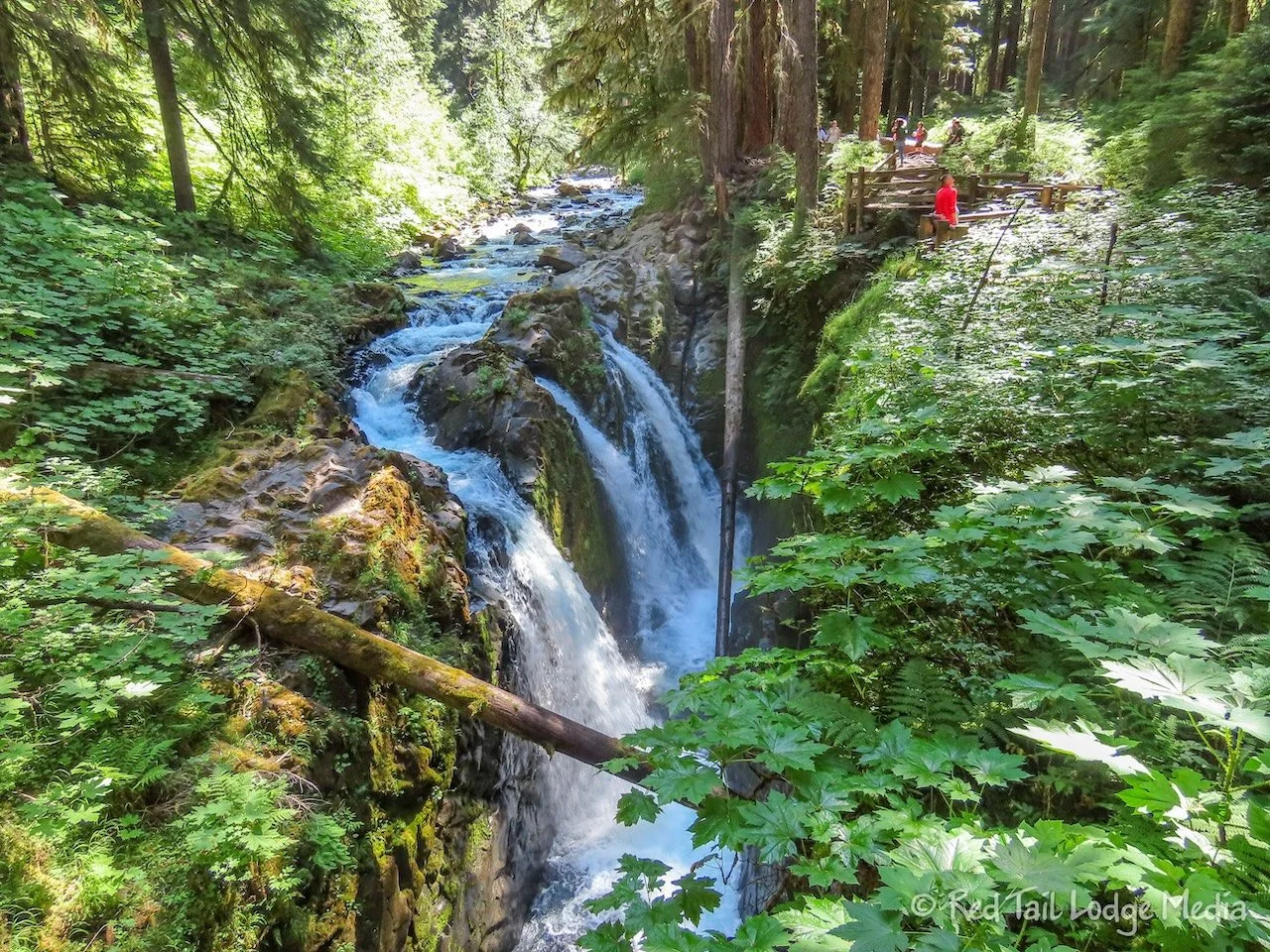 The theme for Saturday was waterfalls. We started out by driving up to Sol Duc Falls trailhead. It was only a half an hour drive from the campground. However, we didn’t start as early as we did the day before, arriving at the trailhead around 10 am. As we approached the parking lot, there were cars parked alongside the roadway. We figured the lot was already full, so we grabbed a somewhat level spot and parked. You had to be careful, because the shoulder was not very wide in places and had steep drop-offs on the sides.