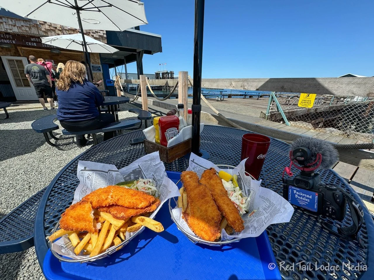 By the time we rode back to Red Tail (our Winnebago EKKO) and put our bikes away, it was after noon. We decided to drive down into Port Angeles for a late lunch. We parked just outside the downtown area and walked over to the Wharf.
