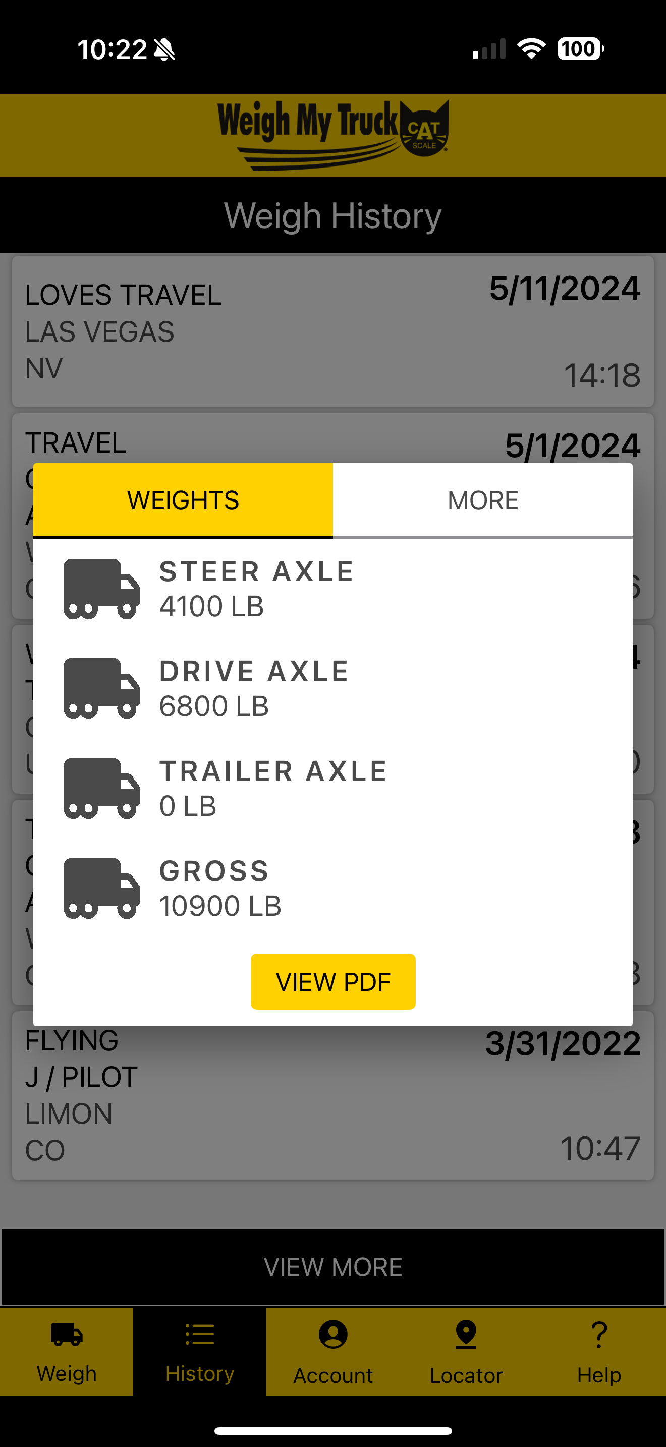 At the start of every travel season, with our rig ful.y loaded with all our gear, groceries, and a full fresh water tank and gas tank, we weigh our RV to make sure we are under our GVWR (Gross Vehicle Weight Rating). Sometimes we’ll weigh the RV during the season, if we think we have any significant weight changes. The easiest way to weigh an RV is to use a Cat Scale. Yup, those same scales that the truckers use. What makes it even easier is their Cat Scale Weigh My Truck app. No trying to talk to someone through a squeaky intercom. All you do is pull up onto the scale, enter the scale number, confirm the payment, and you’re good to go. The app not only shows you the results of your weighing, but keeps a history associated with your account. There is also a Cat Scale Locator app, but we just use Google Maps to find a Cat Scale near us. They are usually located in truck stops.