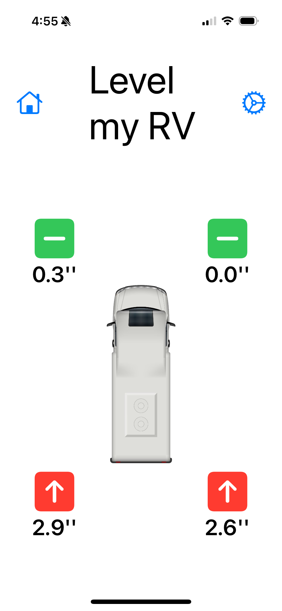 We use Level my RV app to determine how much we need to raise each wheel to achieve level. The app is free, easy to set up, easy to calibrate, and easy to use. We place the phone on a flat piece of the floor that the driver can reach and the app clearly indicates how many tenths of inches each wheel is off from level. We then try to move the RV to a different spot in the camp site to get closer to level, then decide which things to use to level if we are still off. If a wheel is off by less than two inches, we’ll use a 2x6 board. If it is off between two and four inches, we’ll use the GoTreads, with the appropriate amount of stacked folds. If it is off by more than four inches, we may stack the GoTreads on top of the 2x6’s.