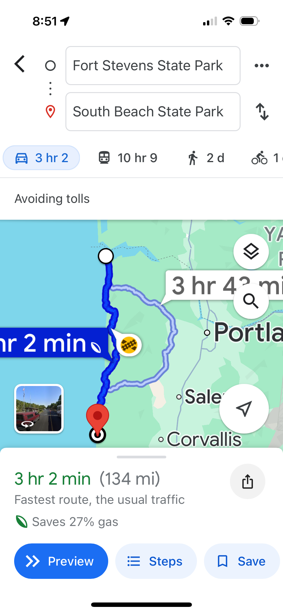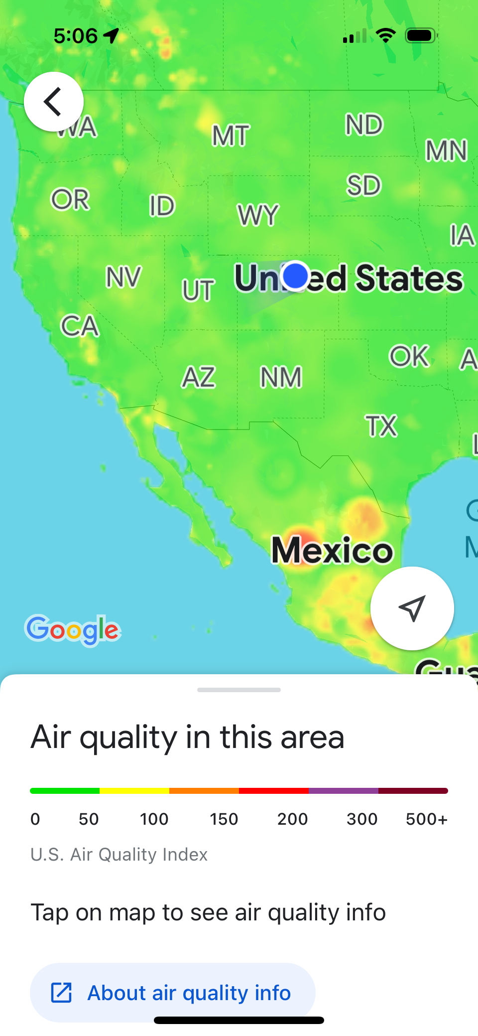 Google Maps is also good for seeing where the wildfires, and poor air quality areas are. This is especially helpful when traveling in the west during the summer and fall, during wildfire season. Wildfire and air quality are map layers which can be selected from the layers icon in Google Maps.