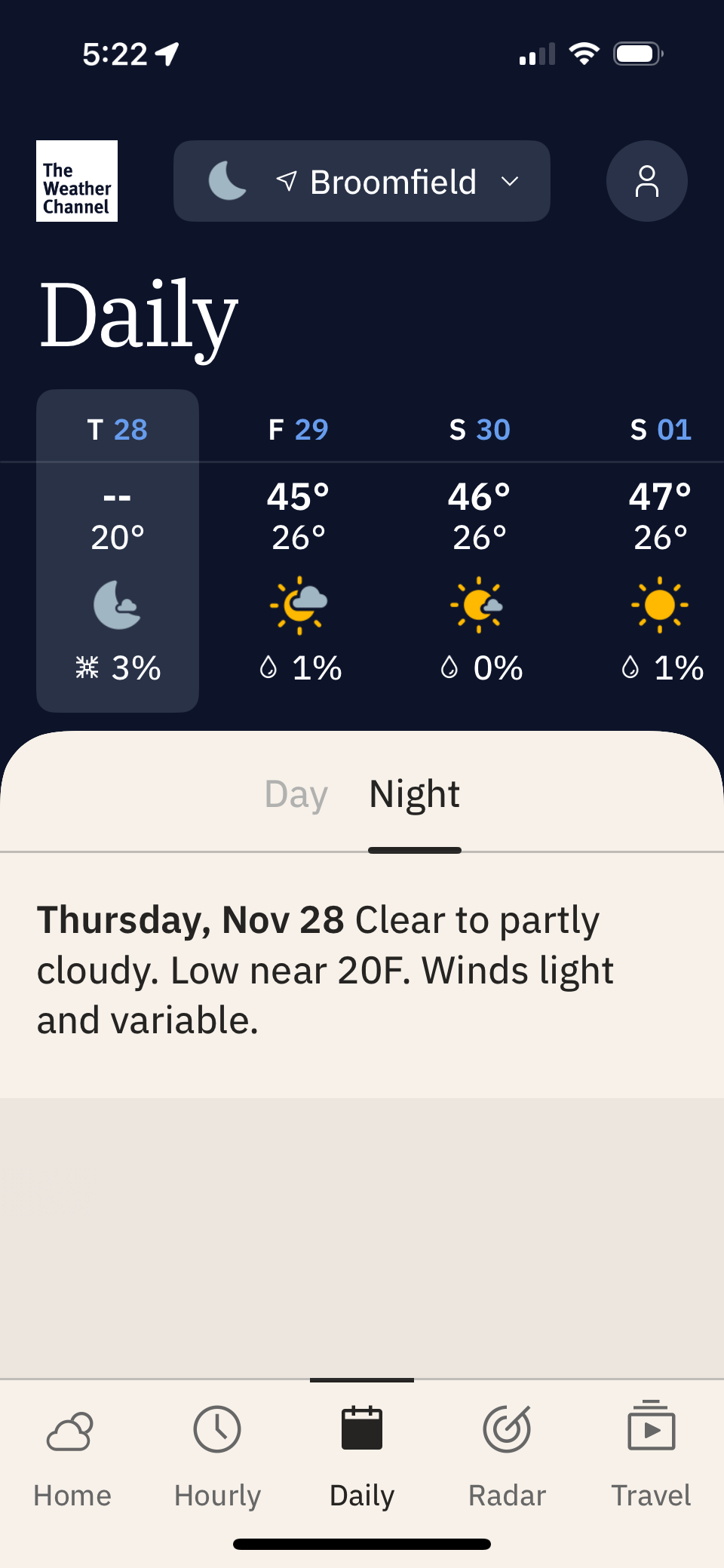 Weather forecasts are not that accurate, so we generally look at more than one forecast. Ann uses The Weather Channel app while Keith uses the Apple Weather app.