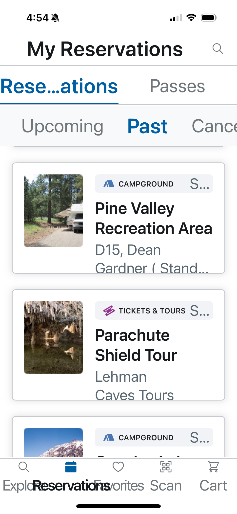 The app also gives you access to your reservations in your recreation.gov account. In addition to campground reservations, it also holds your tickets and passes for such things as cave tours or timed entry passes. For more information, go to their website: Mobile App - Recreation.gov.