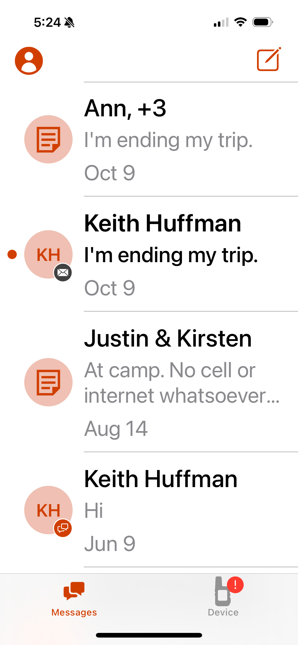 The Garmin InReach devices are not phone apps, but the user interface on the small devices is rather cumbersome and clumsy. However, we can control the devices via Bluetooth from an app on our phones called Garmin Messenger. The app makes the devices so much easier to use. The batteries last so much longer on the InReach devices than our phones, so in a real emergency, when we are stuck out on the trail for days, we can still use the devices after the batteries die on our phones.