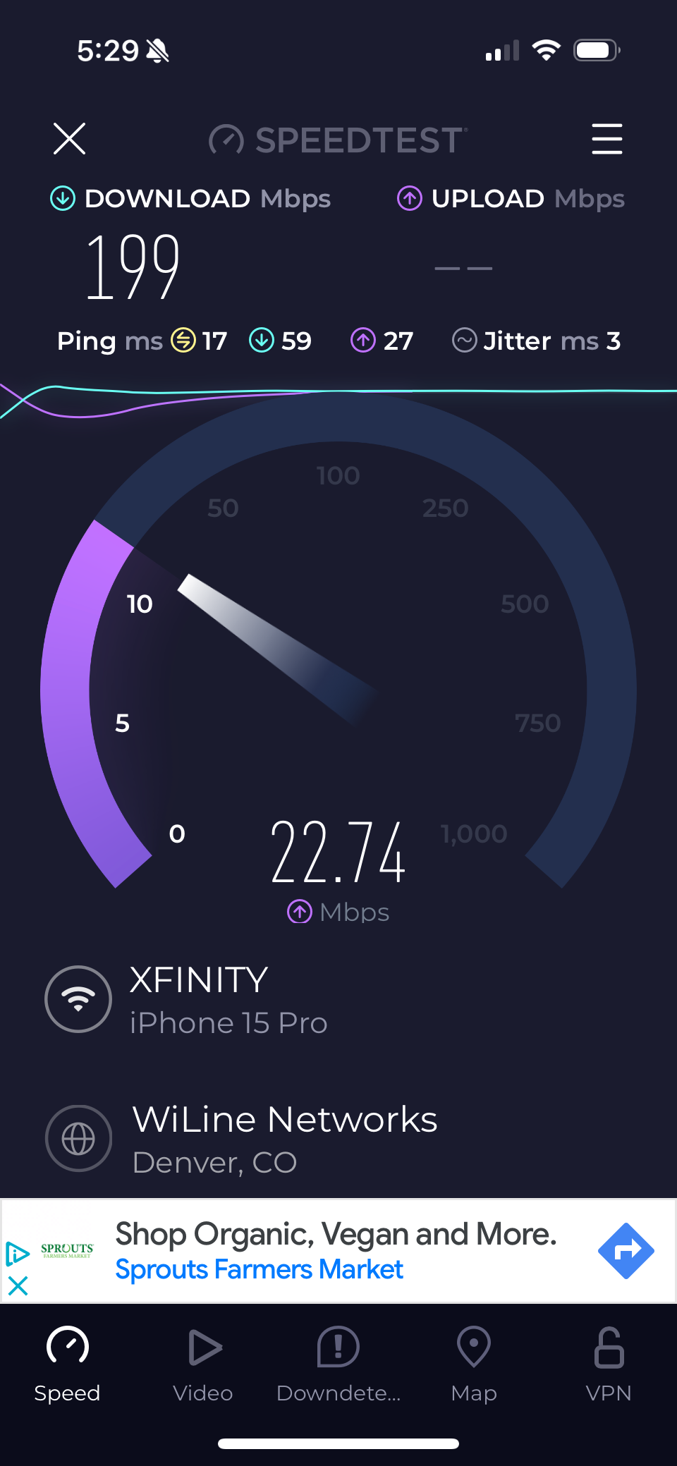 One of the first things we do when we arrive at a new camp site is check the internet connection speeds for our different options. Is it better to use AT&T through our phones or Verizon through our Jetpack hotspot device? Is it better with weBoost (paid link) on or off? Do we set up Starlink or does it cut out too much due to tree cover? Cell signal strength or how many bars of signal is not a good indicator for internet speeds as it doesn’t take into account how heavy the cell or satellite traffic is. The Speedtest app actually measures the speed of sending and receiving data to and from the internet. A handy little tool to have. Speedtest is also available through a browser from their website so we can test the connection from our laptops.