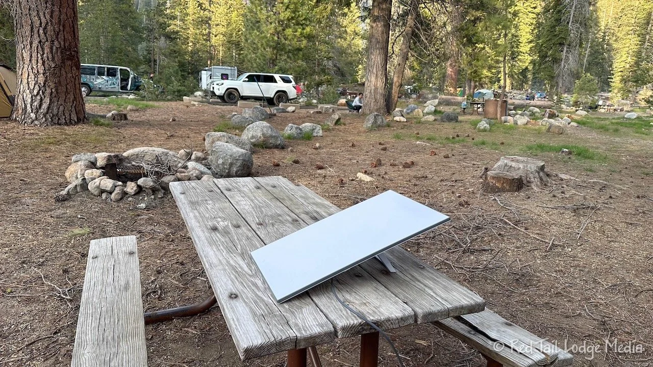 During Season Six, Keith got tired of our poor internet connections. Several places at the start of the season didn’t have good cell service. Our old 4G Verizon Jetpack (paid link) kept dropping the connection on us. We knew that Starlink was only good if you had a good view of the sky, so it wouldn’t do us much good when camping in dense woods, but we knew it would be great when we were out of the trees. So less than a month into the season, we ordered Starlink and picked it up at a nearby Best Buy.