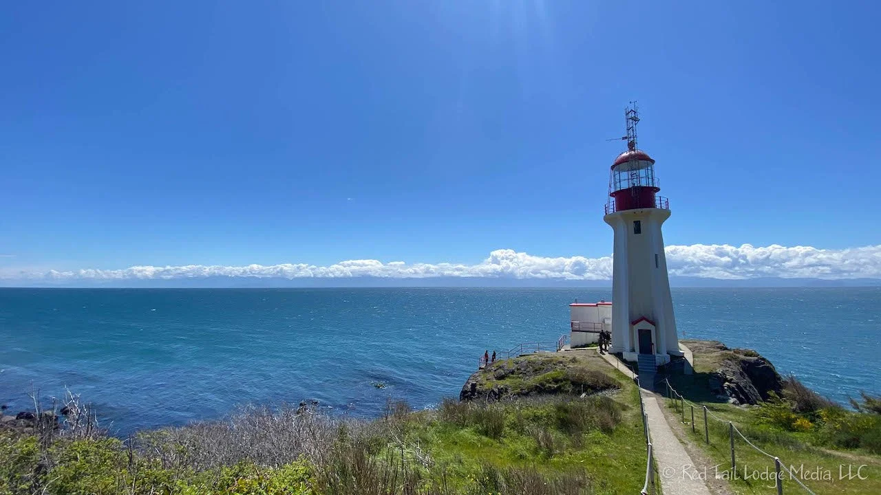 Our next stop was the Sheringham Point Lighthouse. We made the mistake and put in the directions to the lighthouse itself instead of the Sheringham Lighthouse View Trail. Google tried to take us down some private roads and we had to turn around, going back to the highway and follow the correct directions. The road you want to turn on is the Sheringham Point Road, right where the Shirley Delicious Cafe is located. The narrow, one lane road leads you down to a small parking lot at the trailhead. From there, it is a short, but steep walk down to the lighthouse. The lighthouse is situated on a dark, rocky shoreline. It is definitely worth a visit.