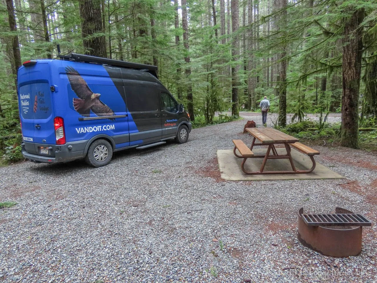 From Port Renfrew, the Pacific Marine Circle Route heads back inland. The road had been progressively getting worse since we left Sooke. Not only is the road narrow and windy, it needs some repair. It is paved the whole way, but there a lots of patches, dips, and rough spots. You won’t be setting any speed records, especially in an RV. We bounced around quite a few times in our Red Tail Lodge (our camper van). Taking a large RV on this road is probably not a good idea. The road was probably good training for the Alaska Highway and Top of the World Highway we will be traveling on later which are known for their frost heaves.