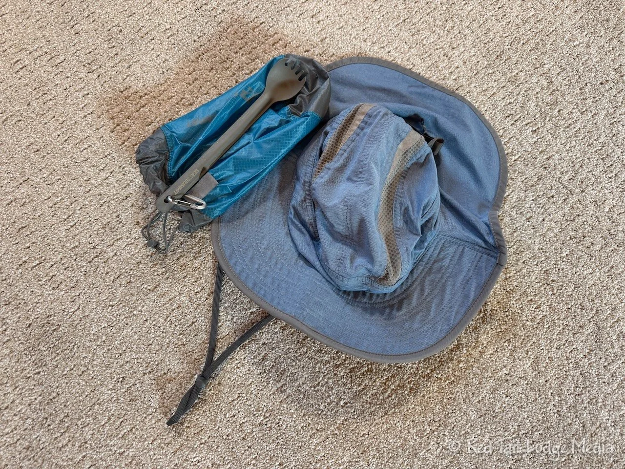 The other items in the top pouch were a backpacking spork (paid link) and a hat. The spork was in case we bought food, especially from a grocery store, that needed a utensil in order to eat it. Ann normally wore the hat.