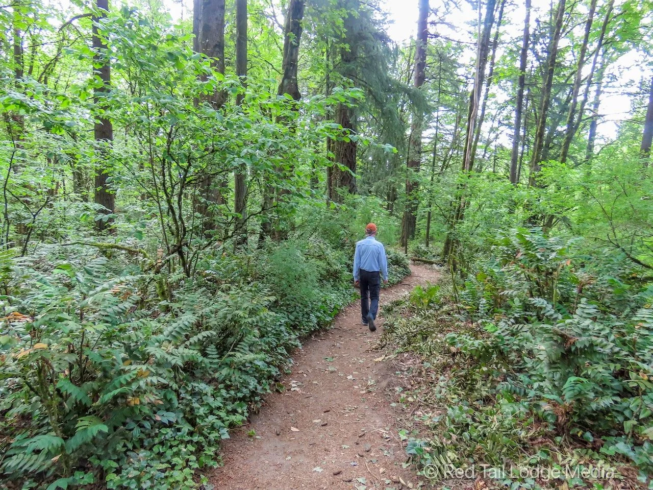 From the zoo parking lot, we walked the trails over to the International Rose Test Garden. It was about two miles away. We used several different named trails, but it was easy to just follow the signs to the gardens. It was a lovely walk through the woods, with posted signs identifying some of the trees.