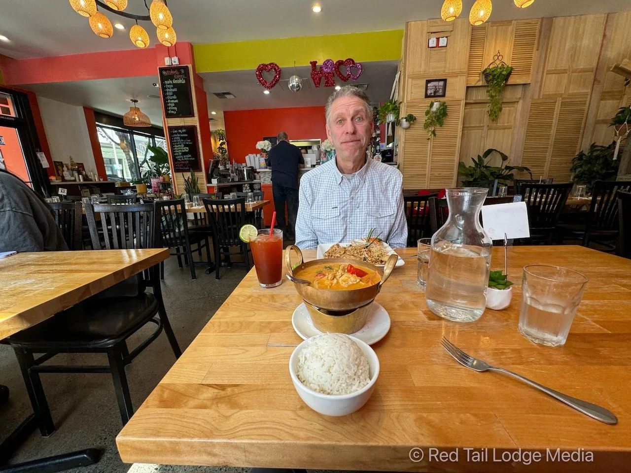 We rode the trolley down to Pearl District where we hopped off to find a place to eat lunch. We wandered around for a little while. Deschutes Brewery was doing a lively business, but we ate at one in Bend, so we wanted to try something different. We found a little Thai restaurant called Zab Pinto. Ann had the house curry with chicken while Keith ordered the chicken Pad Thai. Our meals were delicious and filling. Keith couldn’t even finish his.