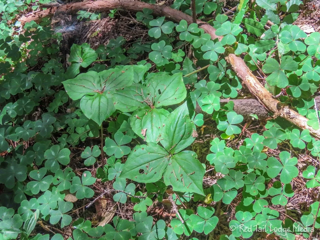 The prettiest part of the trail was after the mill site. Redwood trees surrounded us. A green carpet of large clover, called redwood sorrel, covered the ground. Slate Creek flowed next to the trail with a wonderful, soothing sound of flowing water.