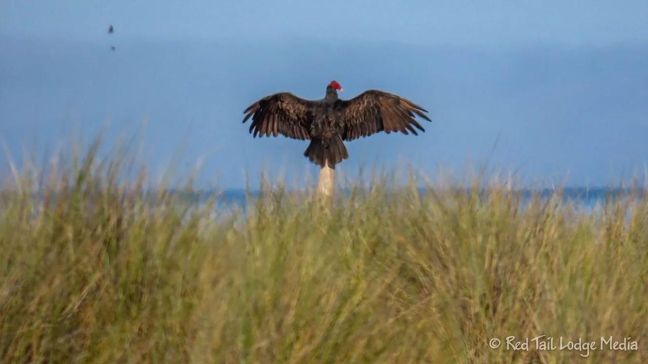 Near the campground, there was a dead sea lion lying on the beach. It was there when we arrived the day before. We were surprised that no animals were feeding on it. On our way back, there were a few turkey vultures having a sea lion meal.