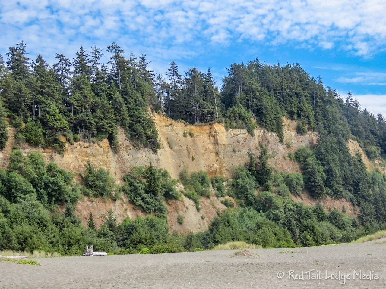 Gold Bluffs Beach Campground is just as the name describes. It sits below a golden bluff, on the edge of the dunes near the beach. It is exposed in the sun. We’re not quite sure all of the dynamics, but the air temperature was about ten to 15 degrees warmer compared to up at Trillium Falls. The sun and warmth felt good. The winds were surprisingly calm. We could faintly hear the sound of the surf from our camp site. The beach was a very short walk away. Since the campground is small, only 26 sites, it felt like we had a private beach to ourselves. A bank of clouds hovered above the horizon, giving us a wonderful sunset.