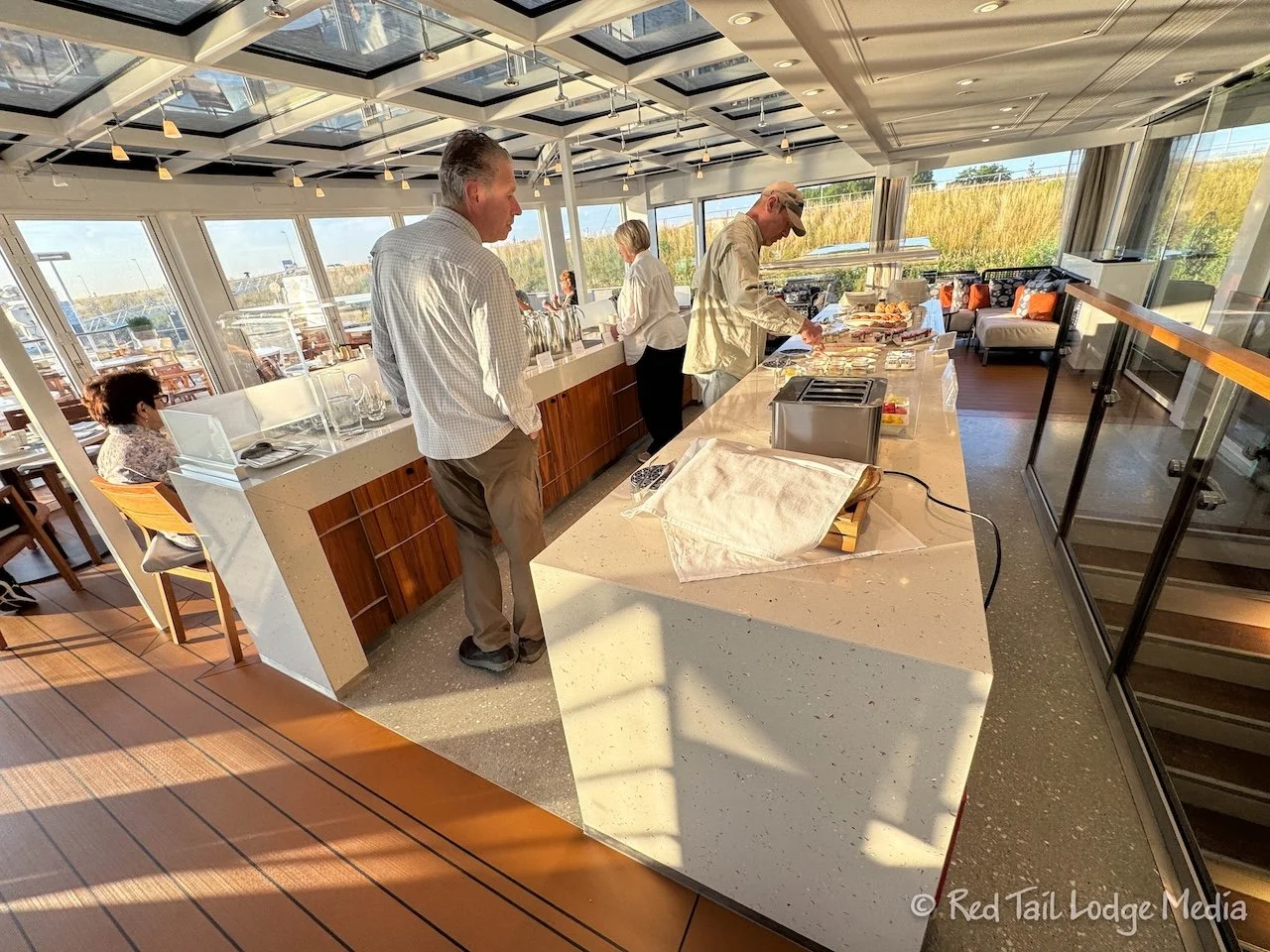 Friday we got up early. We had a tour starting at 8 am. Instead of going to the dining room for breakfast, we had the continental breakfast that was available a little earlier in the Aquavit terrace at the end of the lounge. We didn’t need a lot of food anyway.