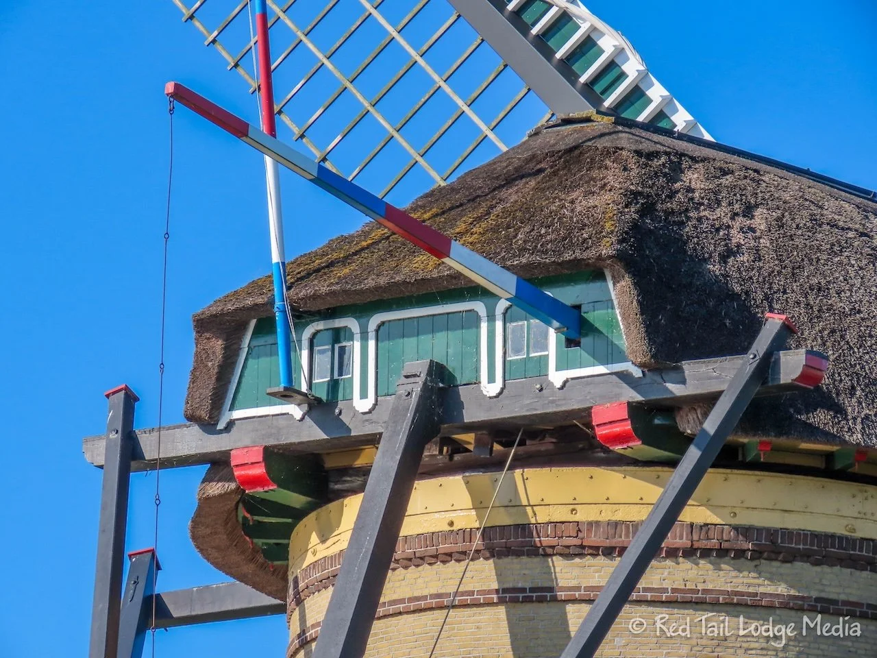 We rode the vintage barge down the canal to one of the furthest of the Kinderdijk windmills. There a miller explained how the windmills worked and showed us how he can brake and stop the blades, turn the blades to face the wind, and put out the sails on the blades. He can vary how much of the blades are covered by sails, depending on how much wind there is. The inside of the windmill was furnished with items from the 1950’s, when the windmill no longer was used to pump the water. The windmills were replaced by pump stations. There are 19 windmills at Kinderdijk that are owned and managed by Kinderdijk World Heritage Foundation, a non-profit group with over 250 volunteers.