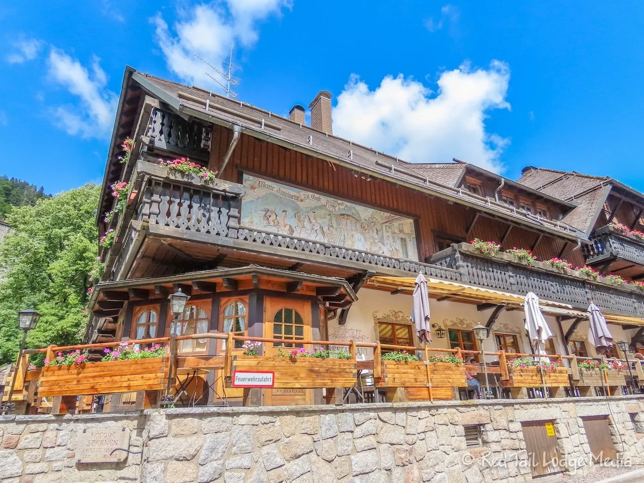 The hike was about a half mile up a trail alongside a stream called Ravenna. It was a rather steep and rocky trail that passed under a tall train viaduct and passed by quite a few waterfalls. It was just our style. We turned around at the Großjockenmühle, an old water mill. It was built in 1883 as a grinding mill for the Großjockenhof Breitnau farm.