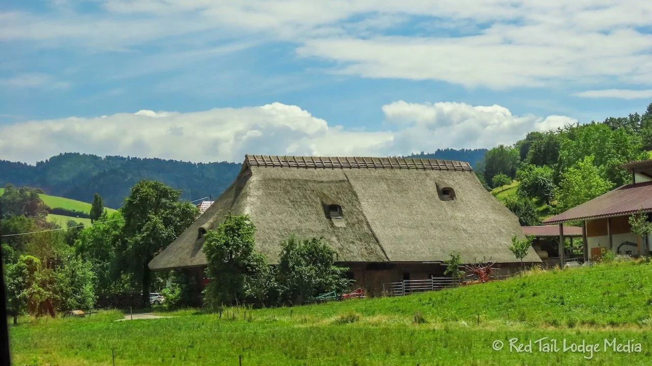 It was about an hour and a half bus ride to reach our destination, but it was a scenic drive through the Black Forest. Along the way, we passed by traditional farmhouses, cows, storks, church steeples, farm fields of asparagus and corn, and beautiful tree-covered mountainsides. Our guide gave us lots of interesting commentary during the trip.