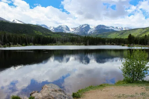 On Saturday, we took the back way into the park, past the historic Stanley Hotel where the movie The Shining was shot. On the way to Sprague Lake, we naturally pulled over when we spotted a crowd gathered on the side of the road. Yup, two elk were there with their antlers covered in velvet. It looked like rain, but we walked the short trail around Sprague Lake anyway. It lightly rained on us, then cleared up, so the walk was beautiful despite the weather.