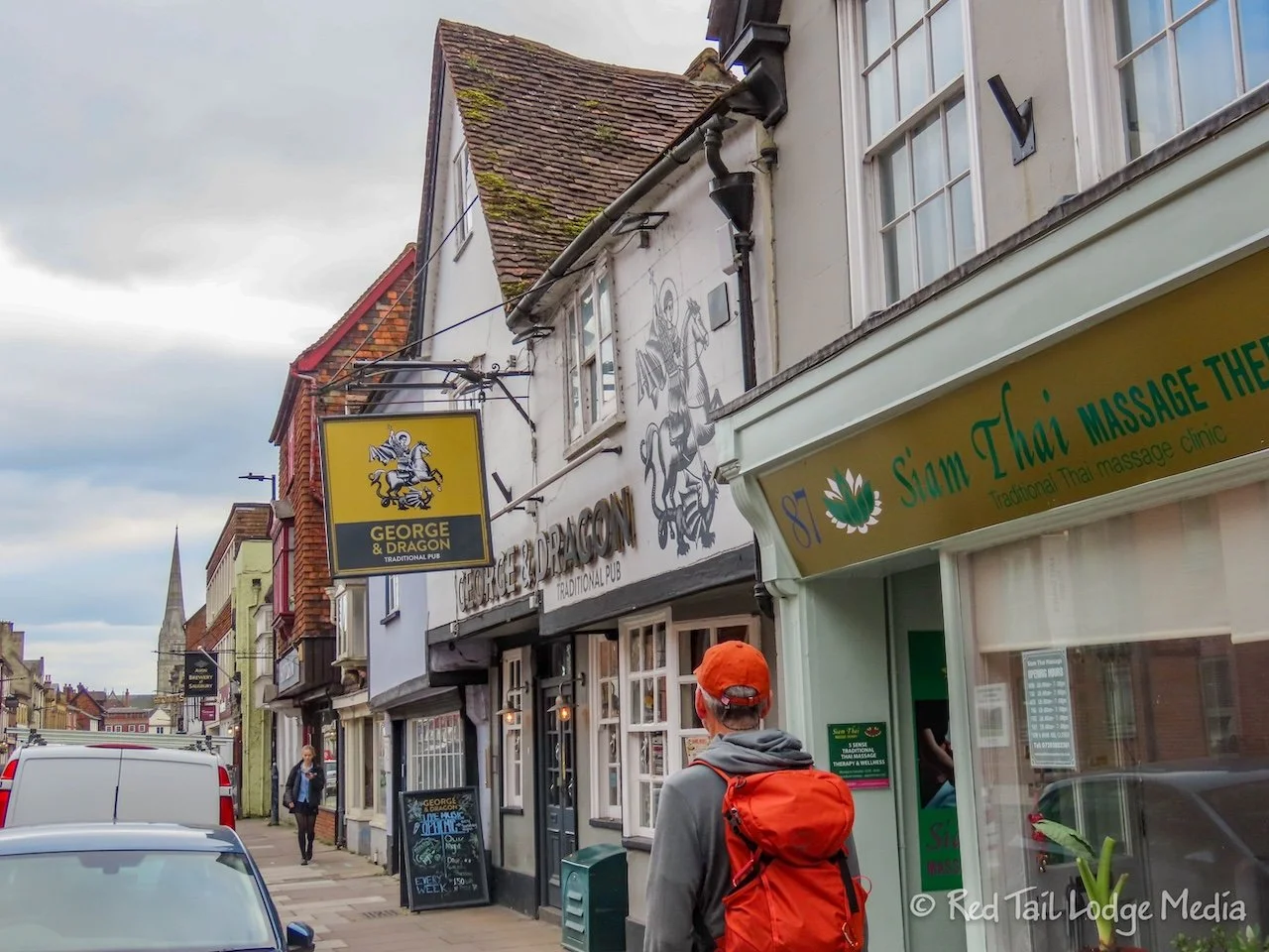 The train ride was only 31 minutes long. When we reached Salisbury, it took us only about ten minutes to walk the 0.4 miles to our hotel, the King’s Head Inn. The hotel is in an old 15th century building in the heart of the city, right next to the River Avon. We were checking in just after 2 pm.