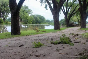 For the night, we drove to Ellis, one town west of Hays, and camped in the Ellis Lakeside Campground which is run by the city. This was a great find on Campendium. For only $20 per night, we had electrical hookups, flush toilets, and hot showers. It is located along the Big Creek, just upriver from a small dam and is right in the middle of the small town of Ellis. Just across the creek is the beautiful St. Mary’s Catholic Church. It was a lovely little campground situated under some trees. However, what was starting to concern us was the weather. Each time we went into the bathhouse, the PA system inside was broadcasting the National Weather Service warnings of severe thunderstorms and flash flooding along with a long list of effected counties. Not being familiar with the counties of Kansas, we had no idea if those counties included the one we were in and the list was too long to memorize to look it up. Looking up the weather on the internet seemed to indicate that the large system of storms was passing through pretty much the whole state. Now sitting right on the banks of a wide creek didn’t seem like a very good idea, but we thought surely if the town thought we were in serious danger, someone would come by and warn us and the others that were camping here. However, we were not sure where we would have moved to, so we stayed.