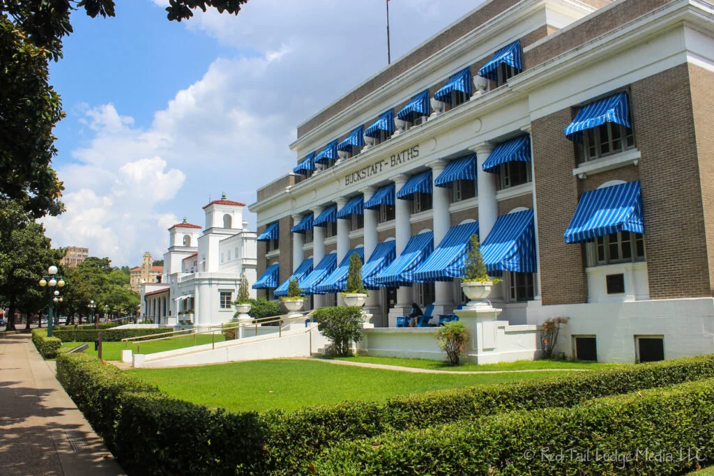 We headed back south on Central Avenue to view the bathhouses from the front. Of the eight bathhouses that are still standing on Central Avenue, only two of them are still operating as bathhouses. The Buckstaff Bathhouse has been in continuous operation since it opened in 1912 and still uses the traditional spa services. The Quapaw Bathhouse which reopened in 2008 provides a more modern spa experience. The other bathhouses are leased out to private companies under the Historic Property Leasing Program and provide other functions, such as a cultural center. The Fordyce Bathhouse, in the center of Bathhouse Row, is the Hot Springs National Park Visitor Center and Museum. The Fordyce has been restored to its early day splendor and can be explored for free on a self-guided tour. We normally are not museum people, but going at our own pace, trying to imagine what it would have been like to visit the bathhouse in the past, with its steam cabinets and massage tables, along with the luxurious rooms to socialize and relax in, was a fun experience. We opted not to partake in an actual spa experience at either the Buckstaff or Quapaw since it was a hot day.