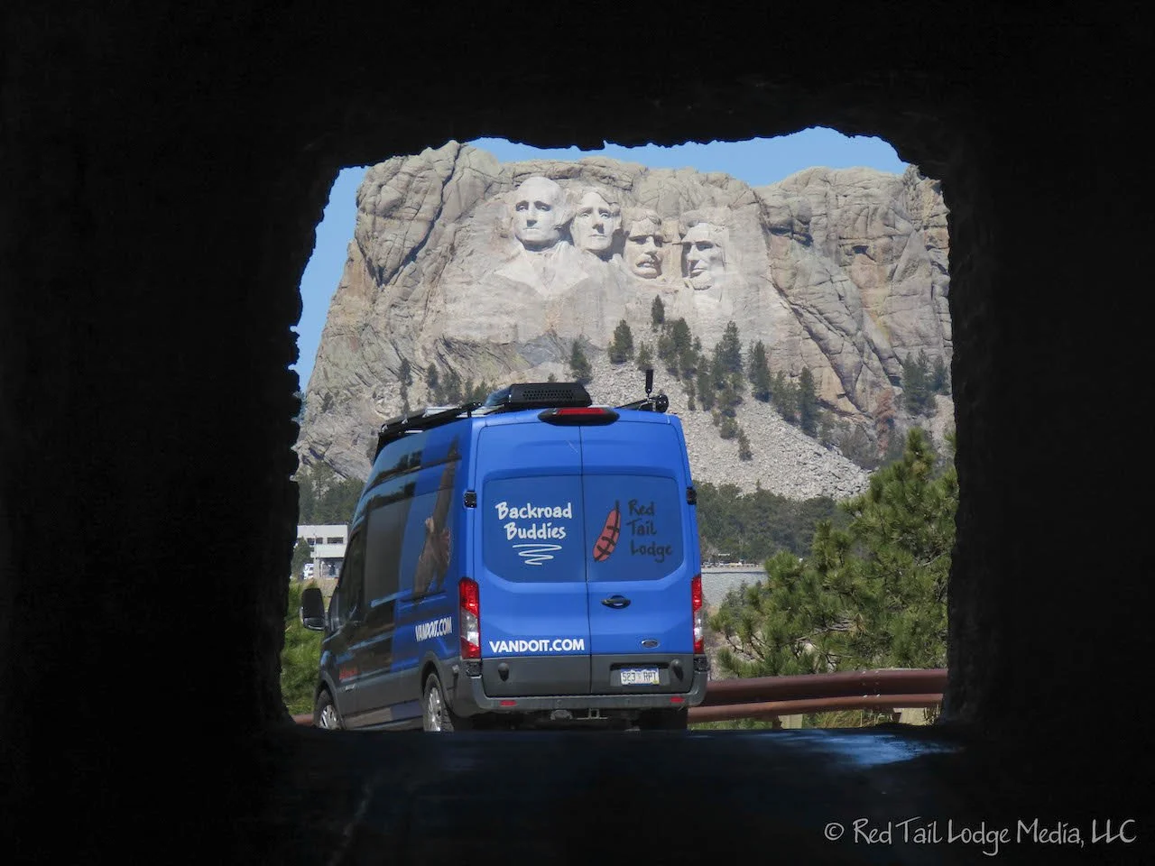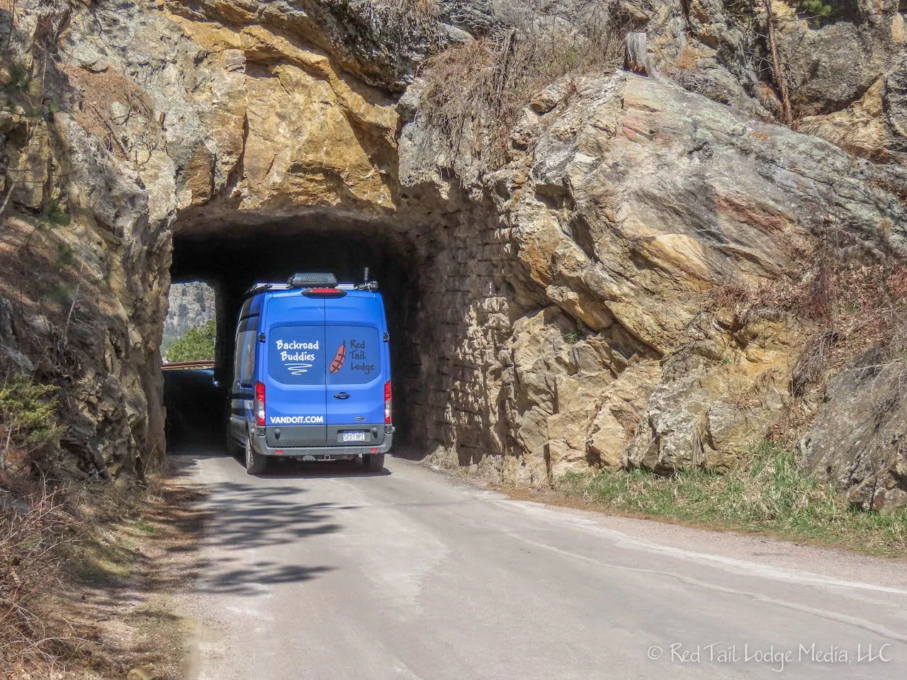 There are three tunnels near the end of Iron Mountain Road. You need to research the size of these tunnels to make sure your vehicle will fit through them before attempting this drive. According to the state park magazine we received when entering the park, the shortest tunnel is 11 feet tall. However, we’ve seen different numbers posted in different places. Our Red Tail Lodge is just under 10 feet tall, so we had no problems going through the tunnels.