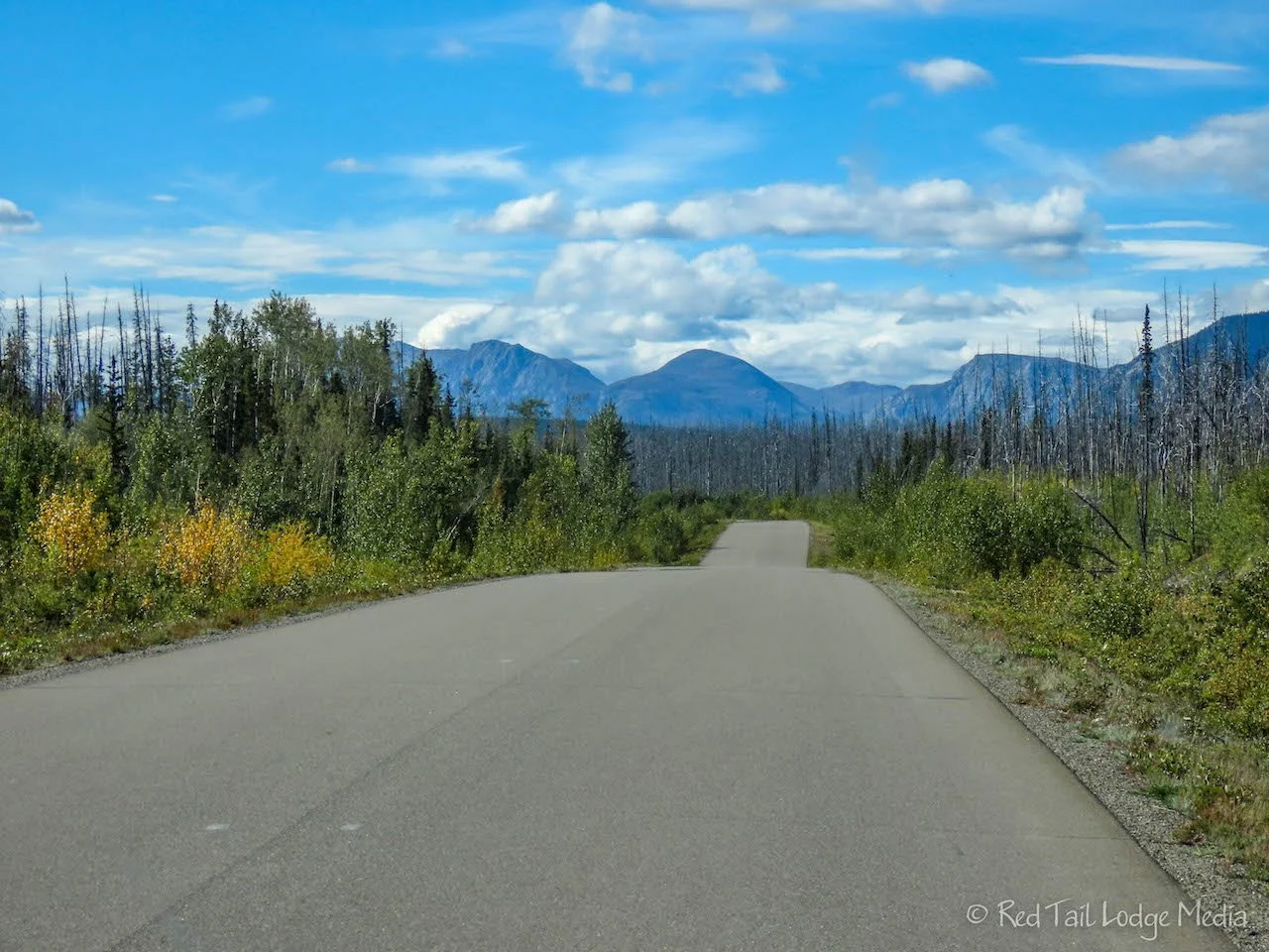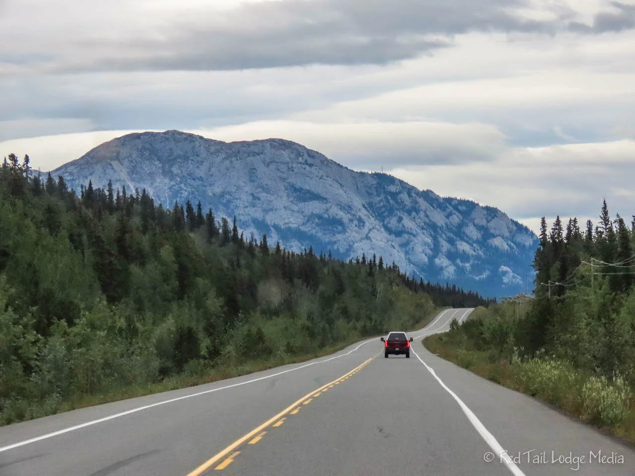 To get to Tā Ch’ilā, we drove north out of Watson Lake on the Alaska Highway, back the way we came the day before, for about 20 miles to pick up the Cassiar Highway leading south. We expected there to be some commercial traffic on the Cassiar since the Alaska Highway was closed further to the south due to a traffic accident and fire near a bridge. It had opened up again to light private vehicles, but was still closed to commercial traffic. There are not a lot of roads this far north, so about the only other option is to take the Cassiar. We came across some truck traffic on our drive, but not a lot.