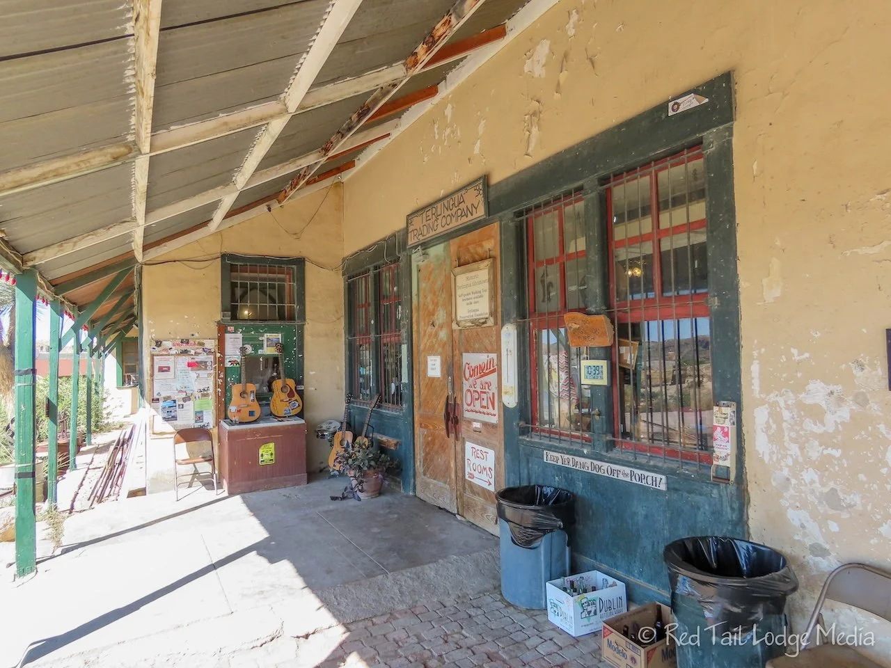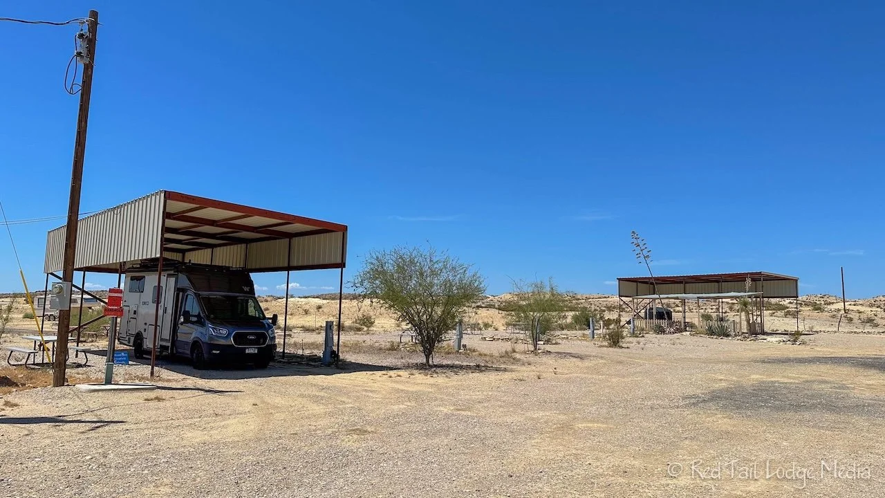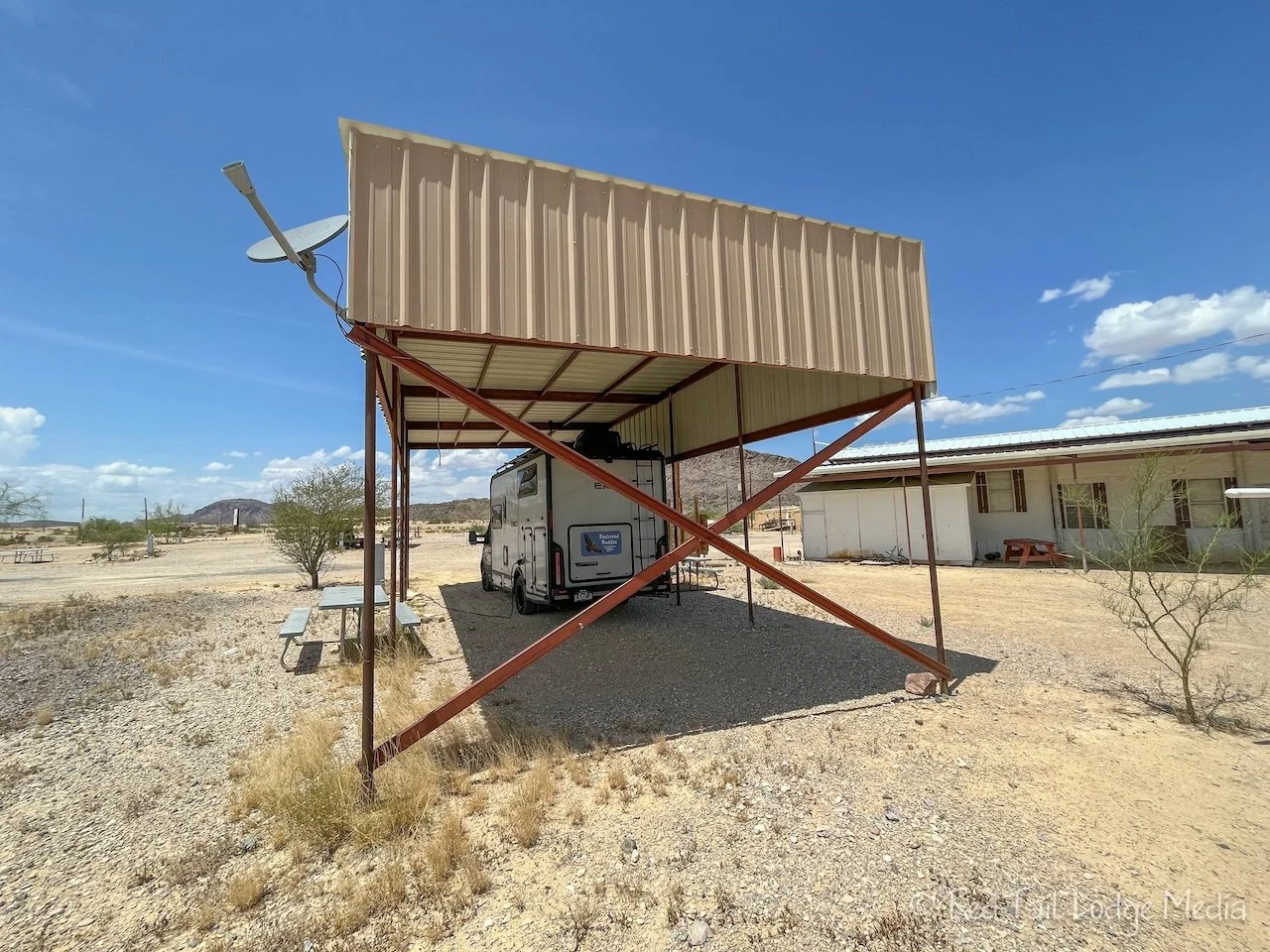 When we arrived at BJ’s RV Park in the late afternoon, no one was in the office. We already had our site assignment, so we just went ahead and set up camp. The campground was pretty deserted, in a desert, in 100+ degree weather. However, our site was one of the covered sites, for which we were very grateful. Getting our rig out of the sun meant we didn’t have to cover up all our windows to keep the sun out. And the AC had an easier time keeping Red Tail at the set temperature. It wasn’t the prettiest campground we’ve ever stayed in, but it had everything we needed. We knew there was supposed to be a bathhouse with showers and laundry, but we weren’t sure which one of the buildings it was in. Since we had full hookups, there was no need to find the bathhouse that first day.