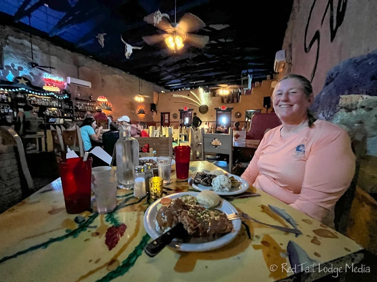 We spent the heat of the day back at the campground, under our shade cover with the AC running. Then we packed up and went back into the Terlingua Ghost Town to have dinner at the Starlight Theater.
