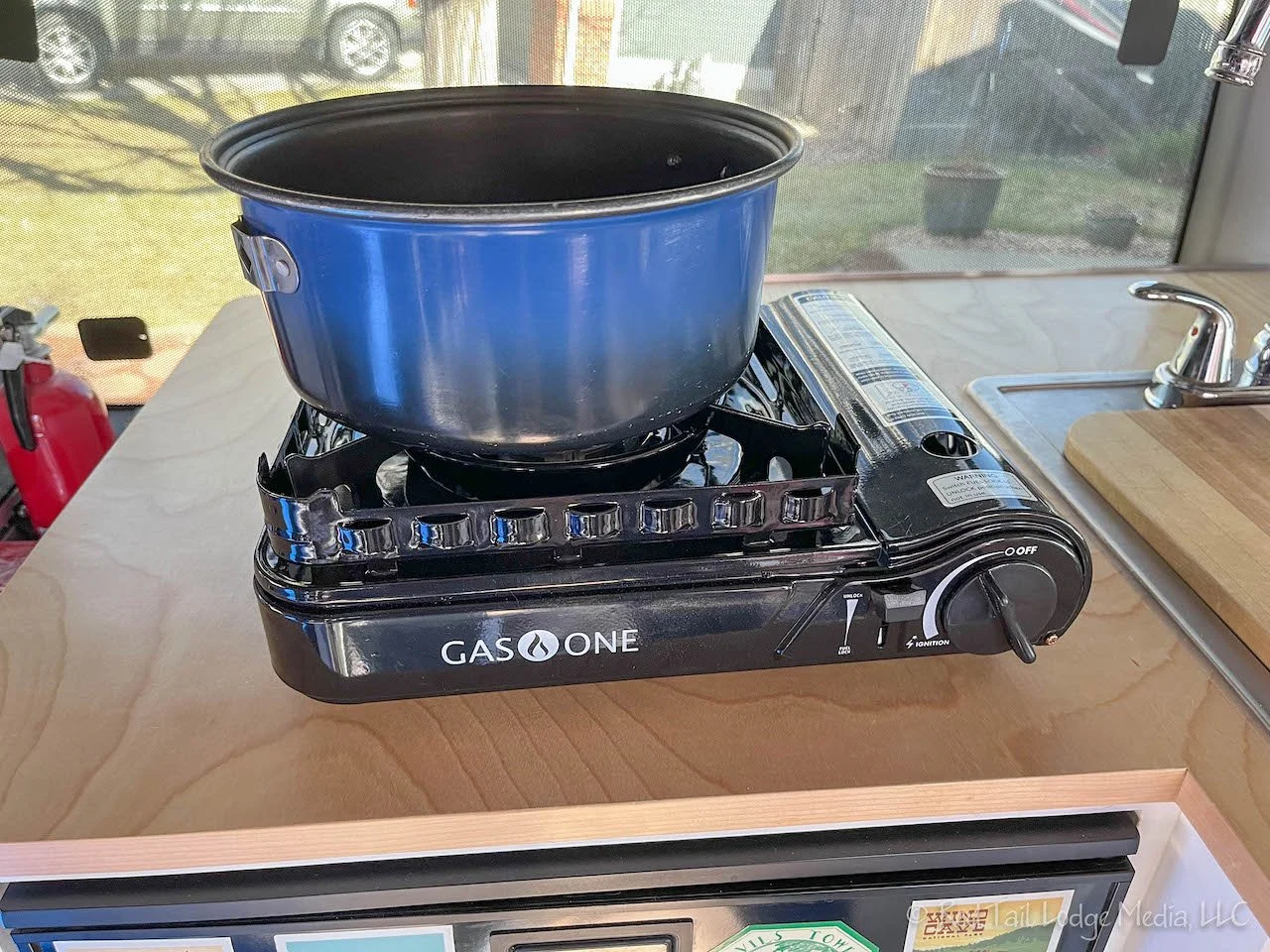 Tip Two: Move the rug out of the way when using the camping toilet. Or better yet, put a water proof (plastic) wastebasket under it. We learned this lesson the hard way. Cleaning the rug and floor in the middle of the night when the camping toilet bag leaks is not fun. We’ll also not be buying the same brand of toilet bags and have removed them from our Gear page. The ones that leaked on us a couple of times were the Green Elephant Portable Toilet Bags.