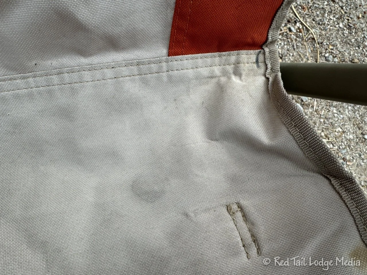 After one of our hikes, Ann was relaxing in her camp chair outside. When she got up, her pants sort of stuck to the chair and she noticed a spot on the chair. Is that pine sap? Yes, and it was on her pants. We’re guessing she picked it up while scrambling over one of the downed trees blocking the trail. Uh-oh! A quick search revealed that rubbing alcohol (70% isopropyl alcohol) is good at removing pine sap and it was something we had with us. The alcohol quickly removed all the pine sap from Ann’s pants, but it didn’t remove is completely from the camping chair. The chair wasn’t sticky anymore, but there was still a visible stain.