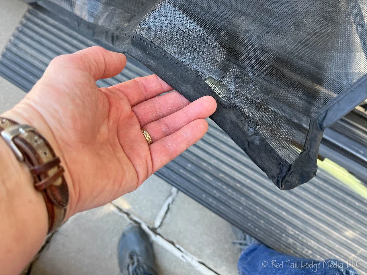 Tip Three: Sew hem tape on bottom of screen door to hold bottom magnets in place. When we originally made the bug screen for the side door, we used hot glue to hold the magnets in the bottom (Preparing Our Camper Van for Season Three 2021). Hot glue did not hold up in the heat. Then we tried gorilla tape, but that didn’t hold very well either. Holding the magnets in by sewing hem tape onto the bottom of the screen seemed to do the trick.
